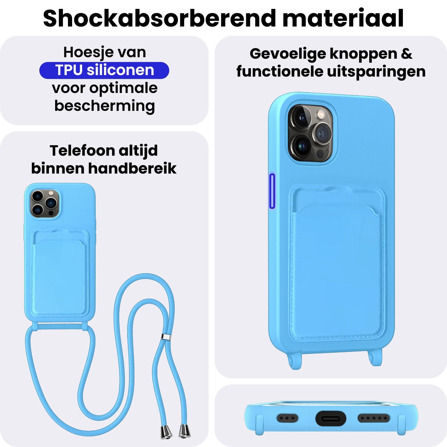 iPhone 14 Pro Hoesje Met Telefoonkoord en Pasjeshouder Siliconen - Lichtblauw