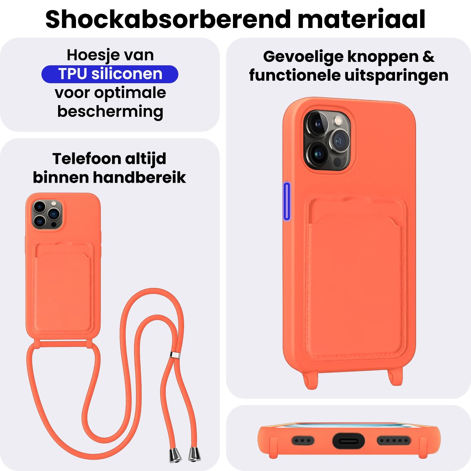 iPhone 14 Pro Hoesje Met Telefoonkoord en Pasjeshouder Siliconen - Papaya