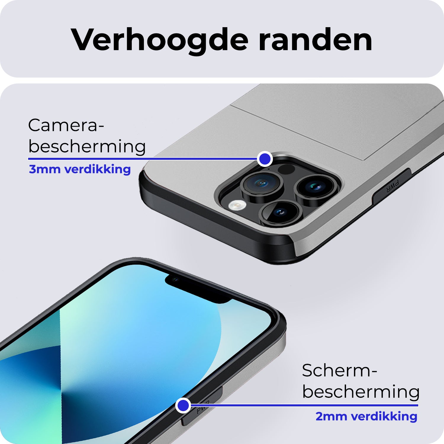 iPhone 14 Pro Max Hoesje Kaarthouder Hard Case Shockproof - Grijs