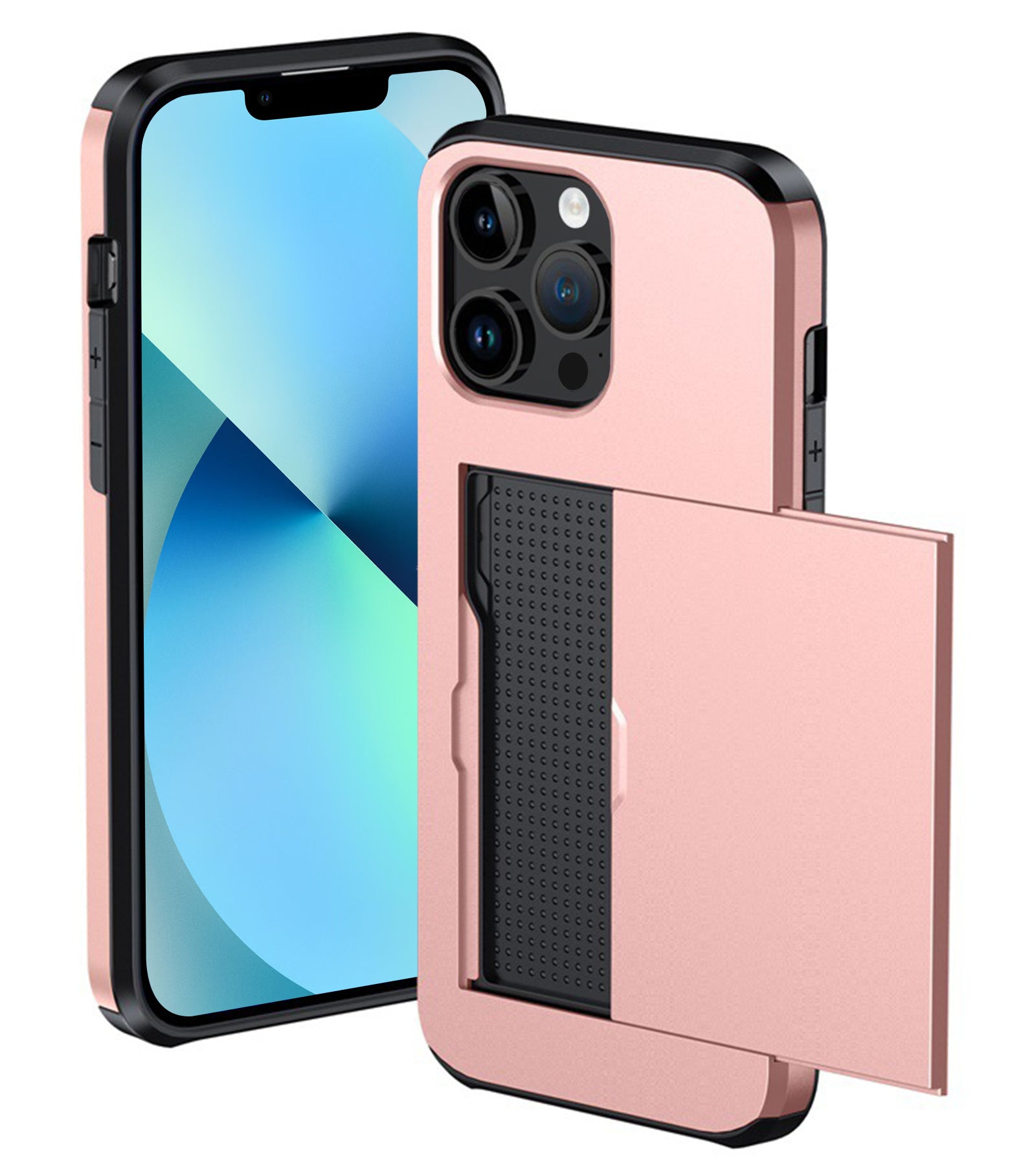 iPhone 14 Pro Max Hoesje Kaarthouder Hard Case Shockproof - Rosé goud