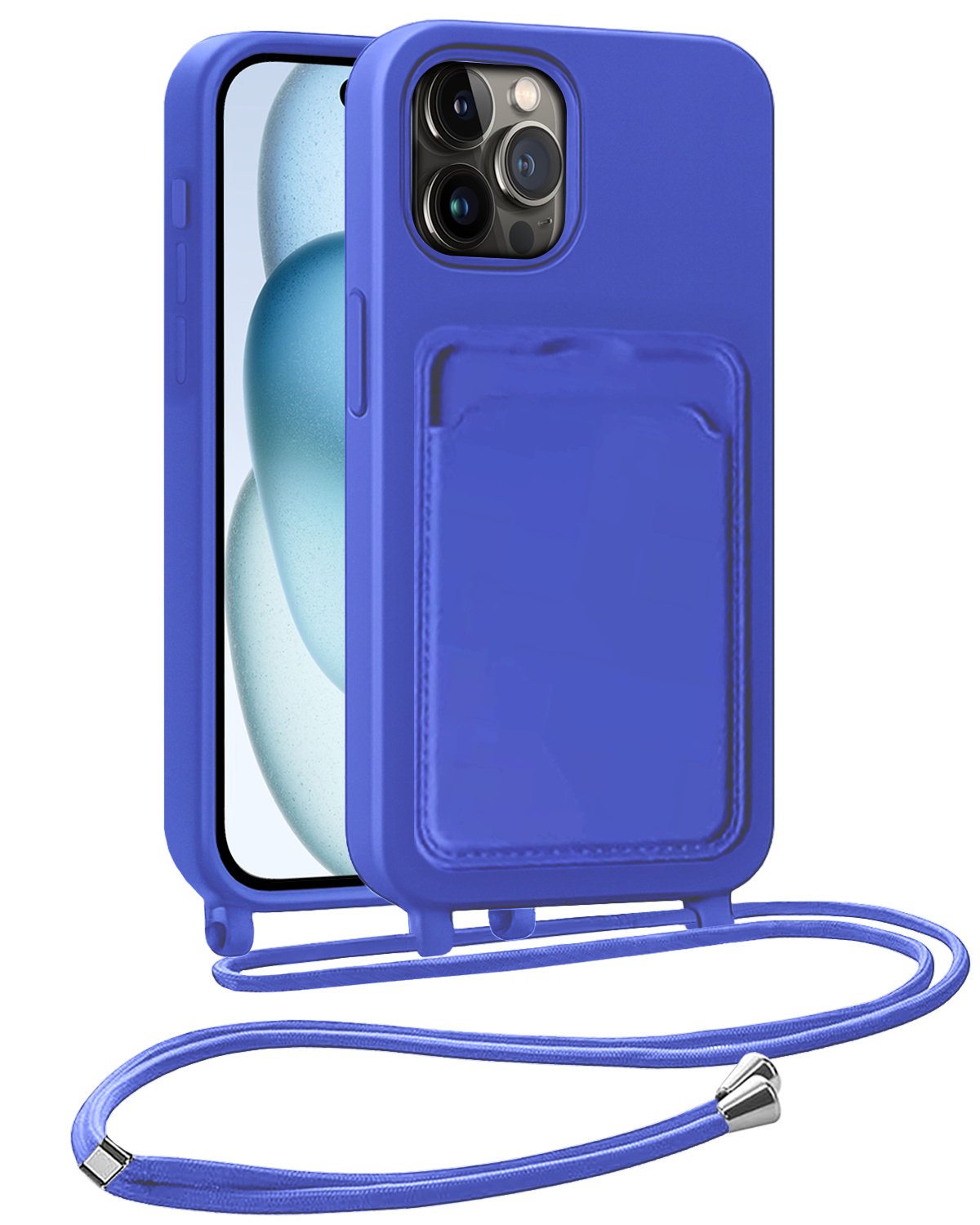 iPhone 14 Pro Max Hoesje Met Telefoonkoord en Pasjeshouder Siliconen - Felblauw