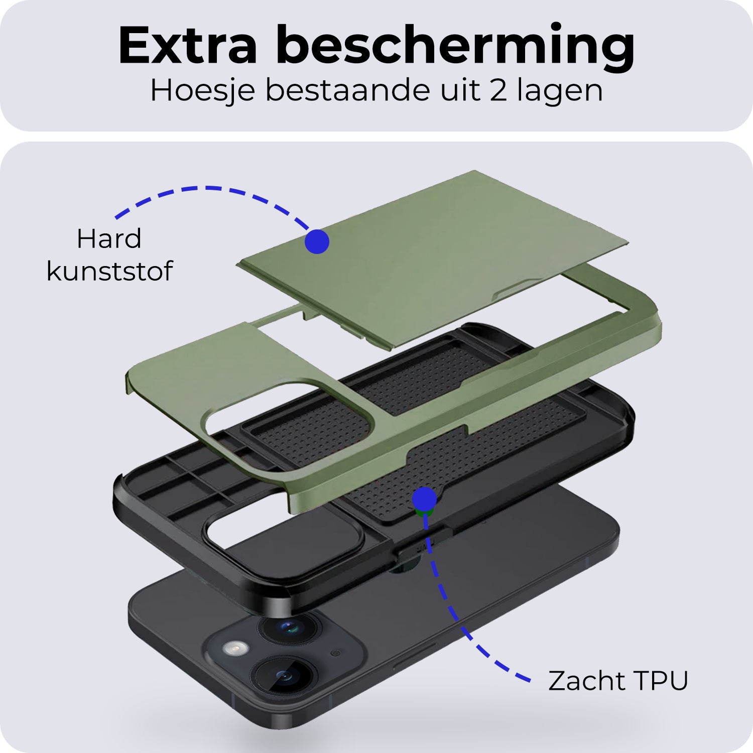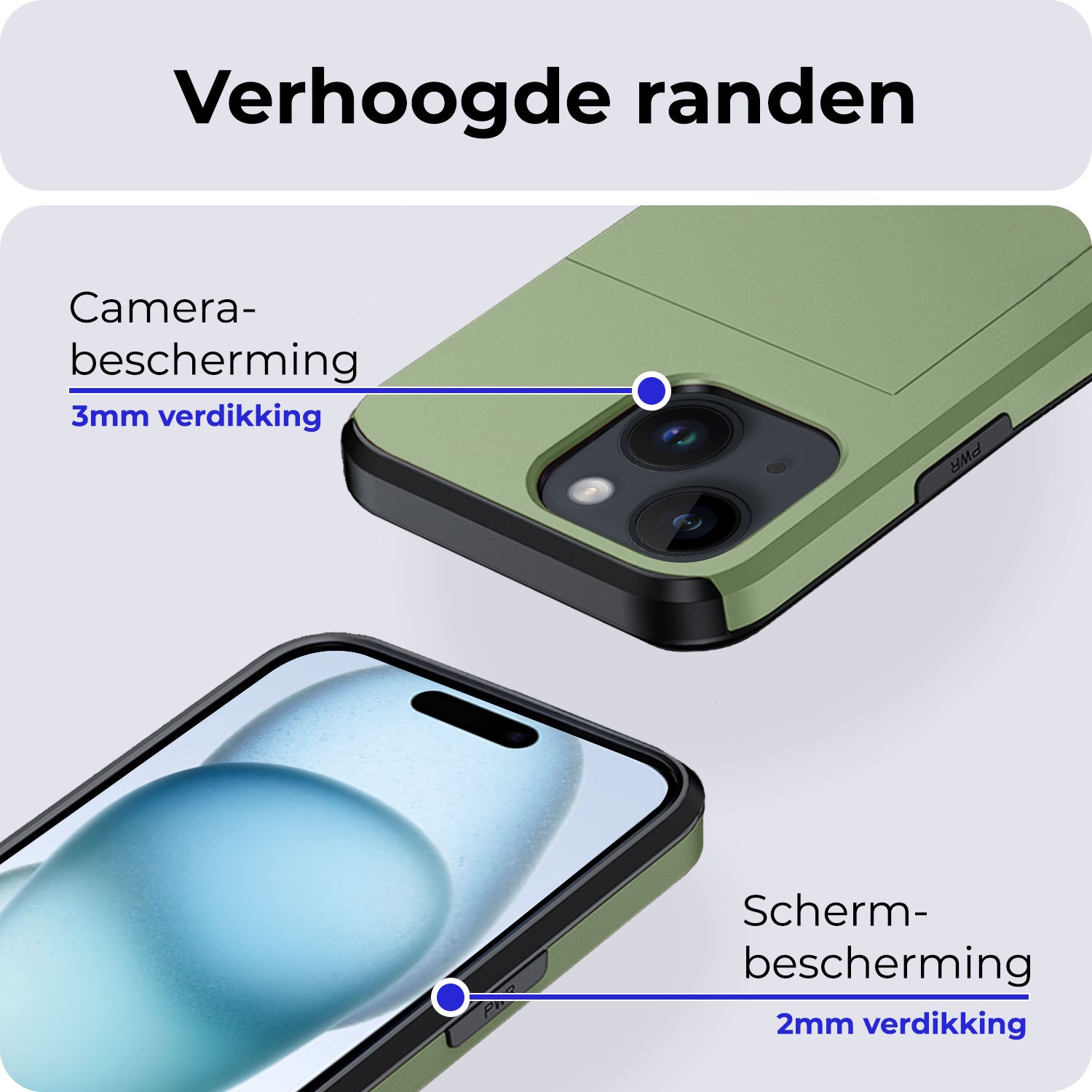iPhone 15 Hoesje Kaarthouder Hard Case Shockproof - Donkergroen