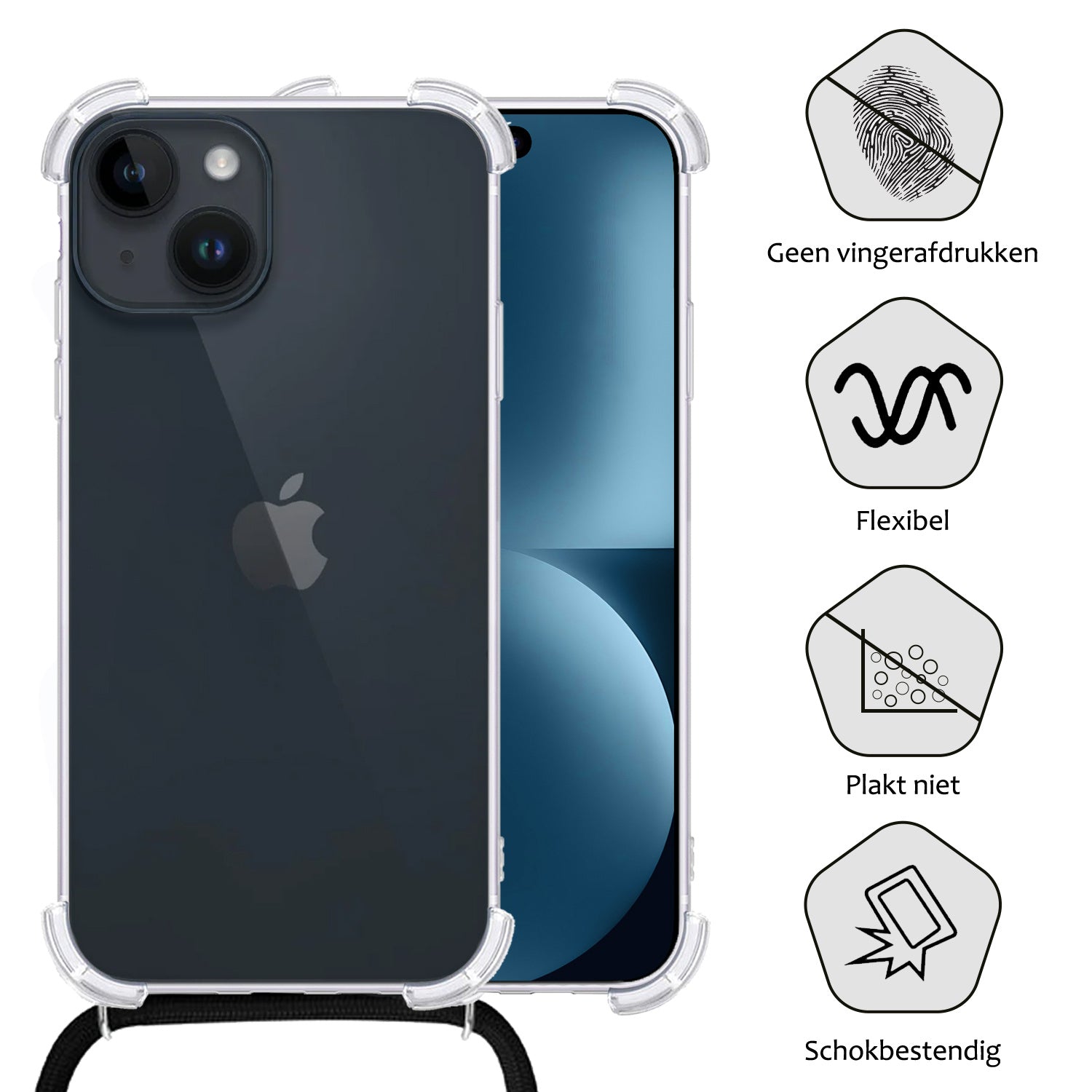 iPhone 15 Hoesje met Koord Backcover Shockproof - Transparant