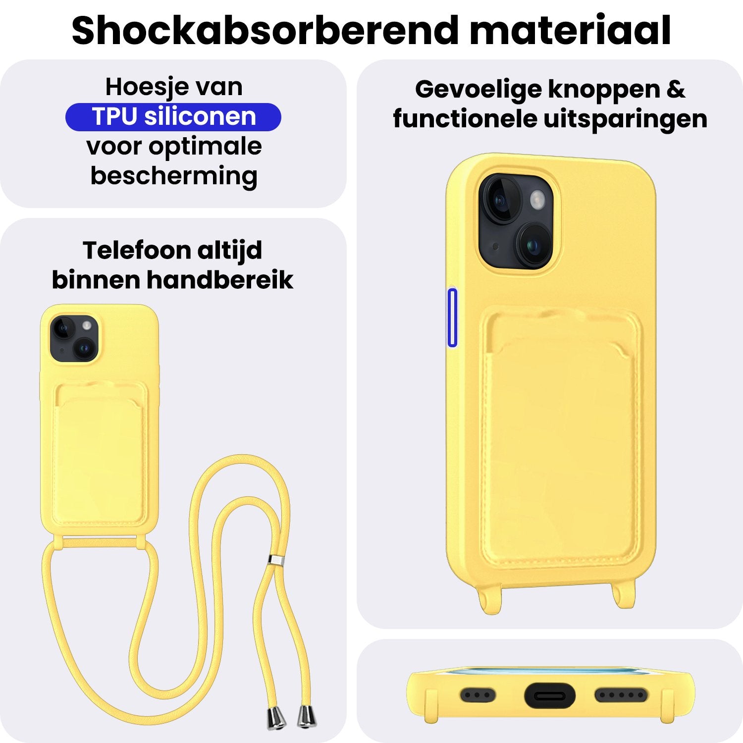 iPhone 15 Hoesje Met Telefoonkoord en Pasjeshouder Siliconen - Geel