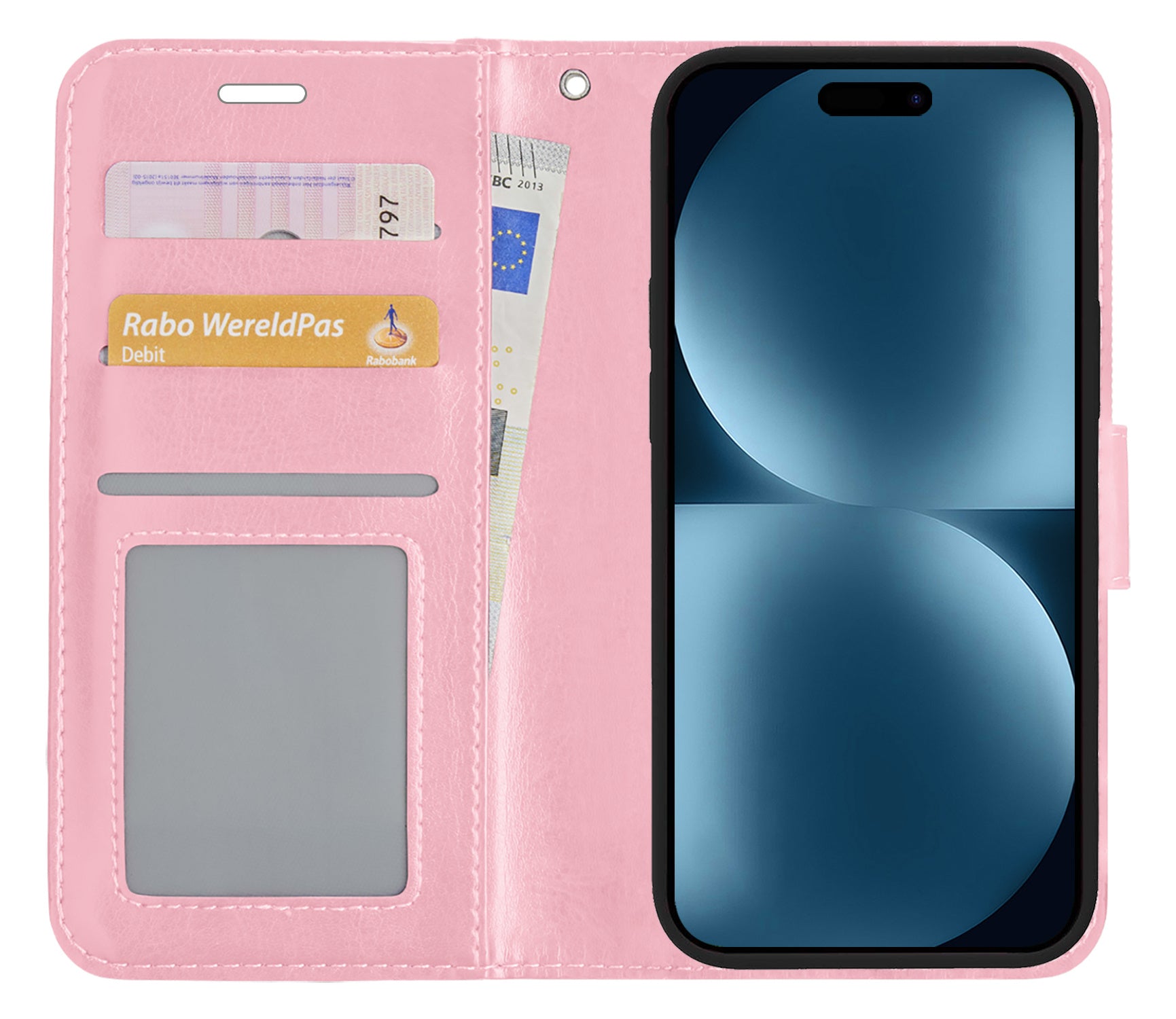 iPhone 15 Plus Hoesje Bookcase Cover met Kaarthouder - Lichtroze