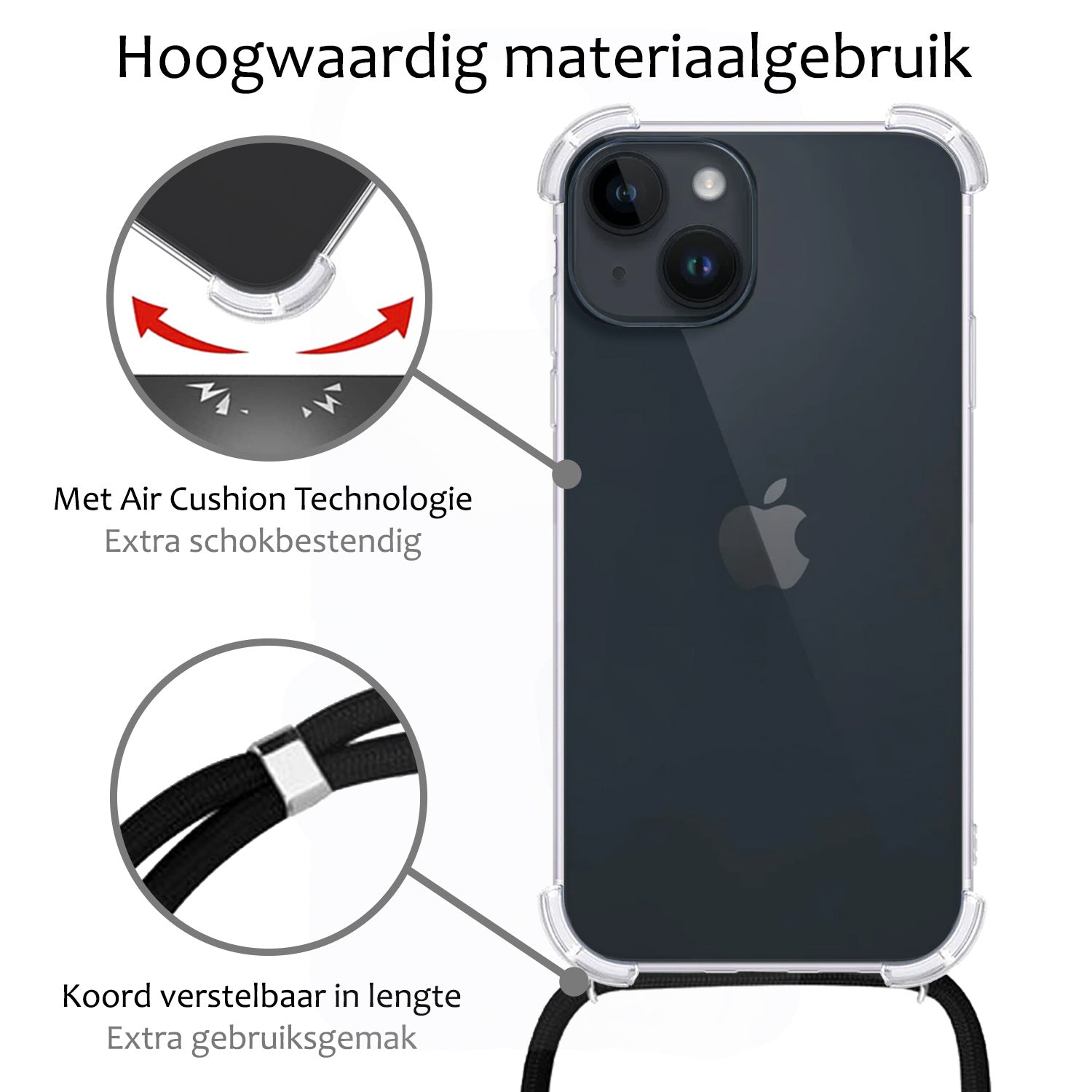 iPhone 15 Plus Hoesje met Koord Backcover Shockproof - Transparant
