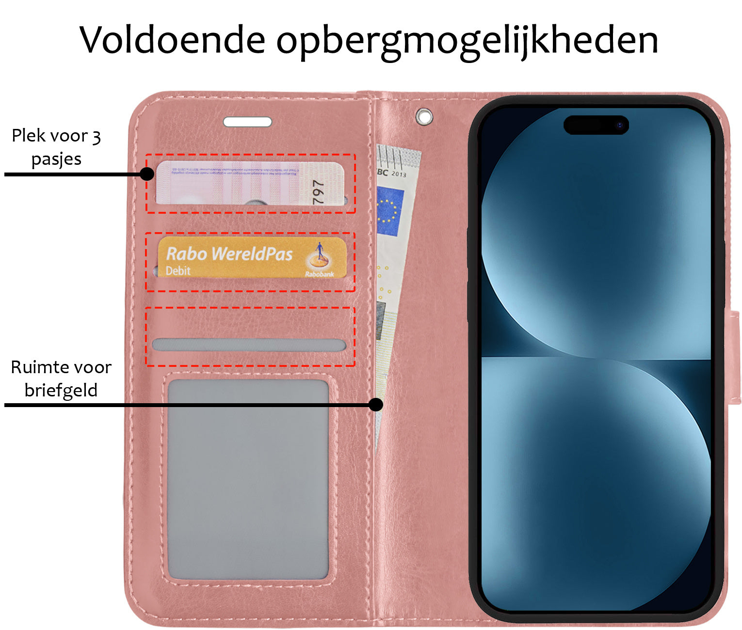 - Ruimte voor pasjes en briefgeld