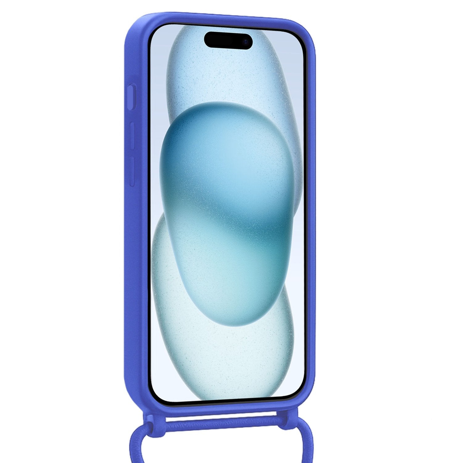 iPhone 15 Pro Hoesje Met Telefoonkoord en Pasjeshouder Siliconen - Felblauw
