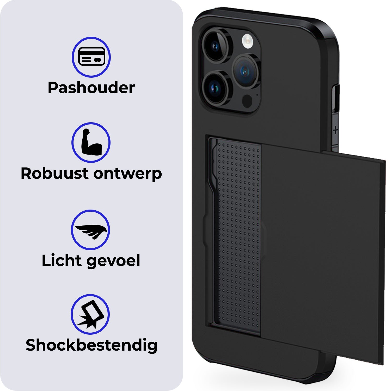 iPhone 15 Pro Max Hoesje Kaarthouder Hard Case Shockproof - Zwart