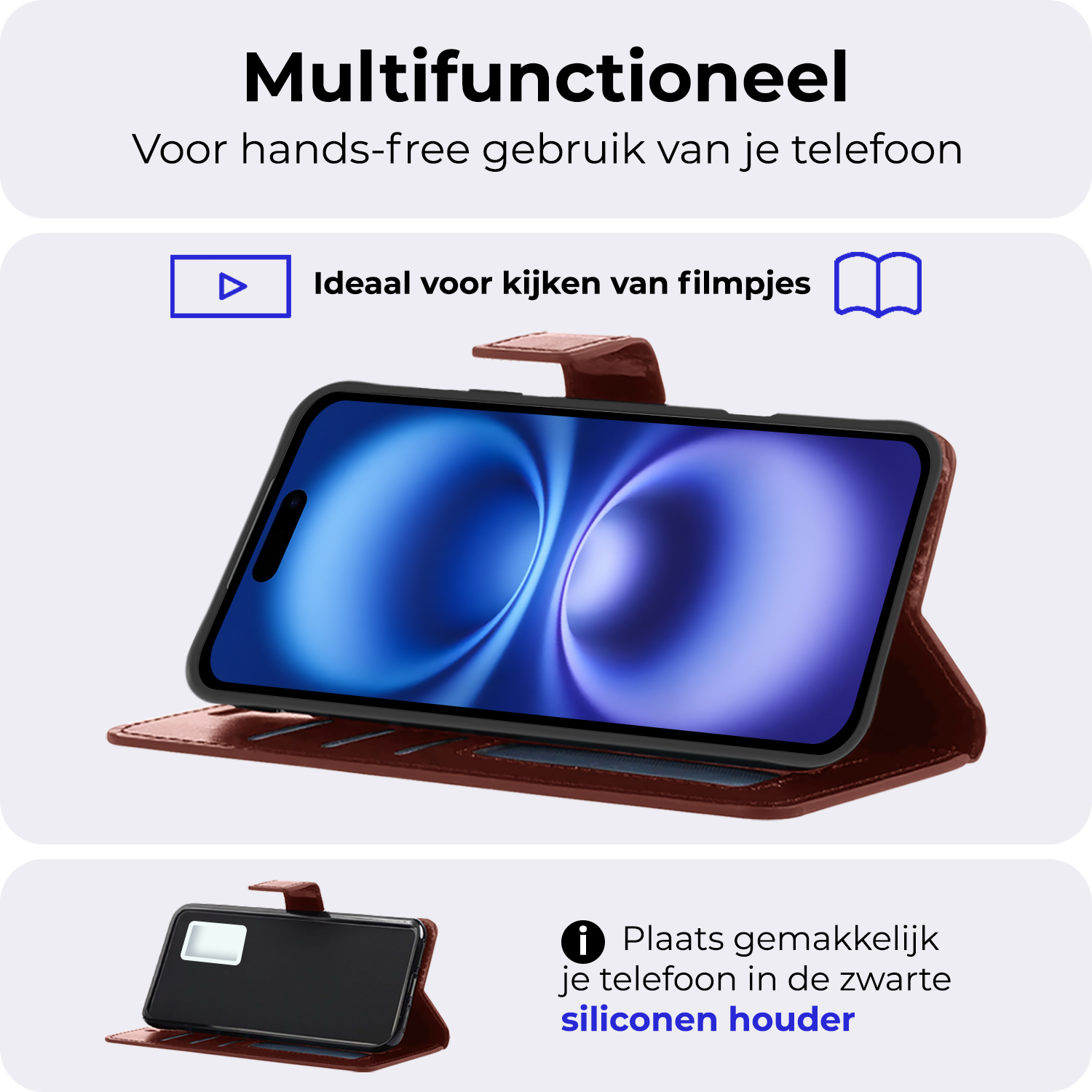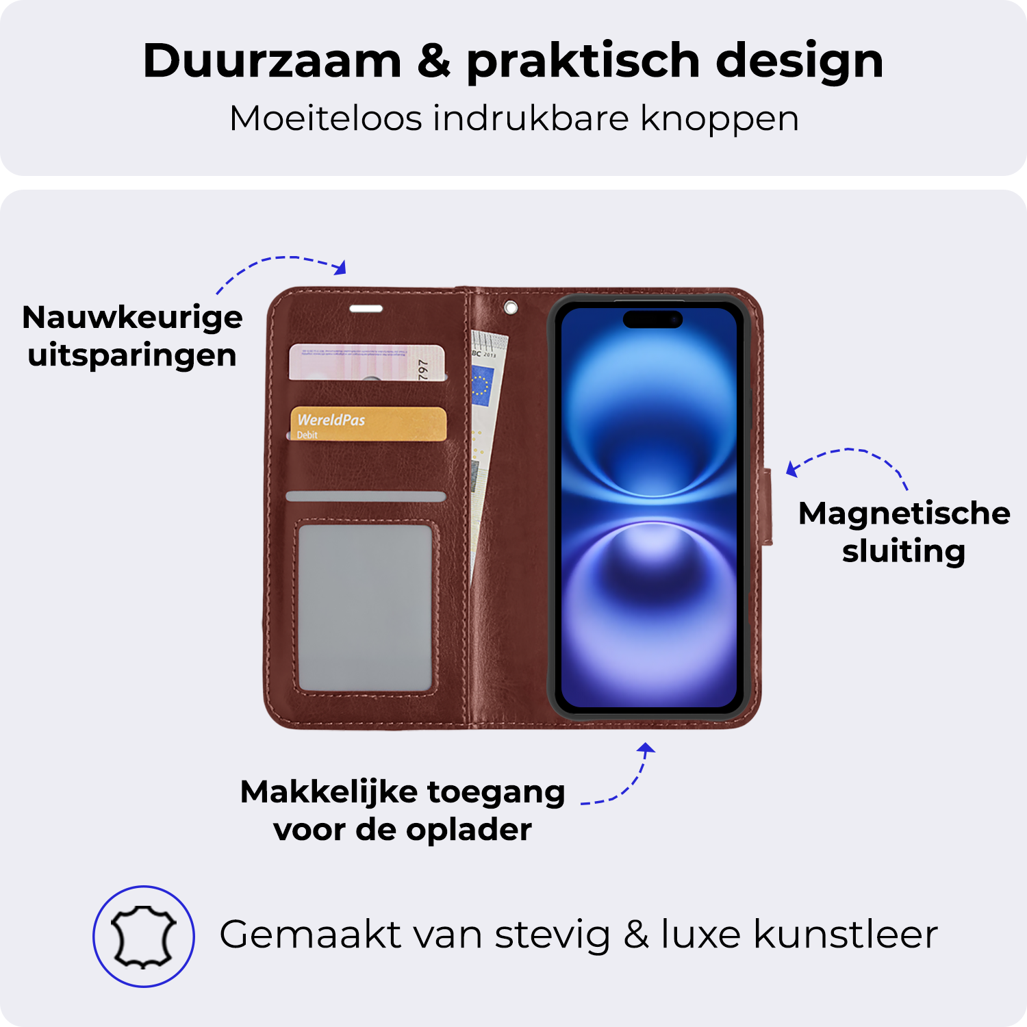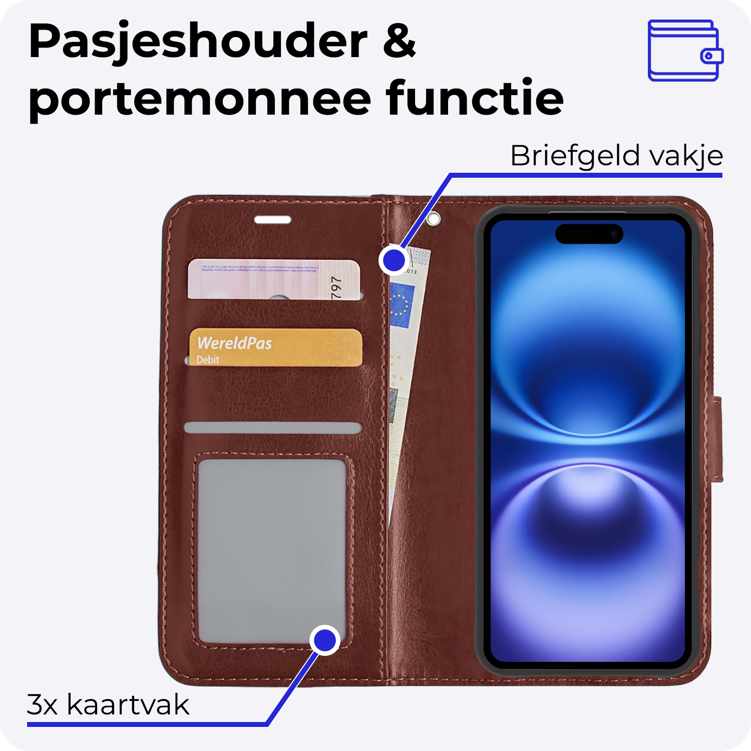iPhone 16 Hoesje Bookcase Cover met Kaarthouder - Bruin