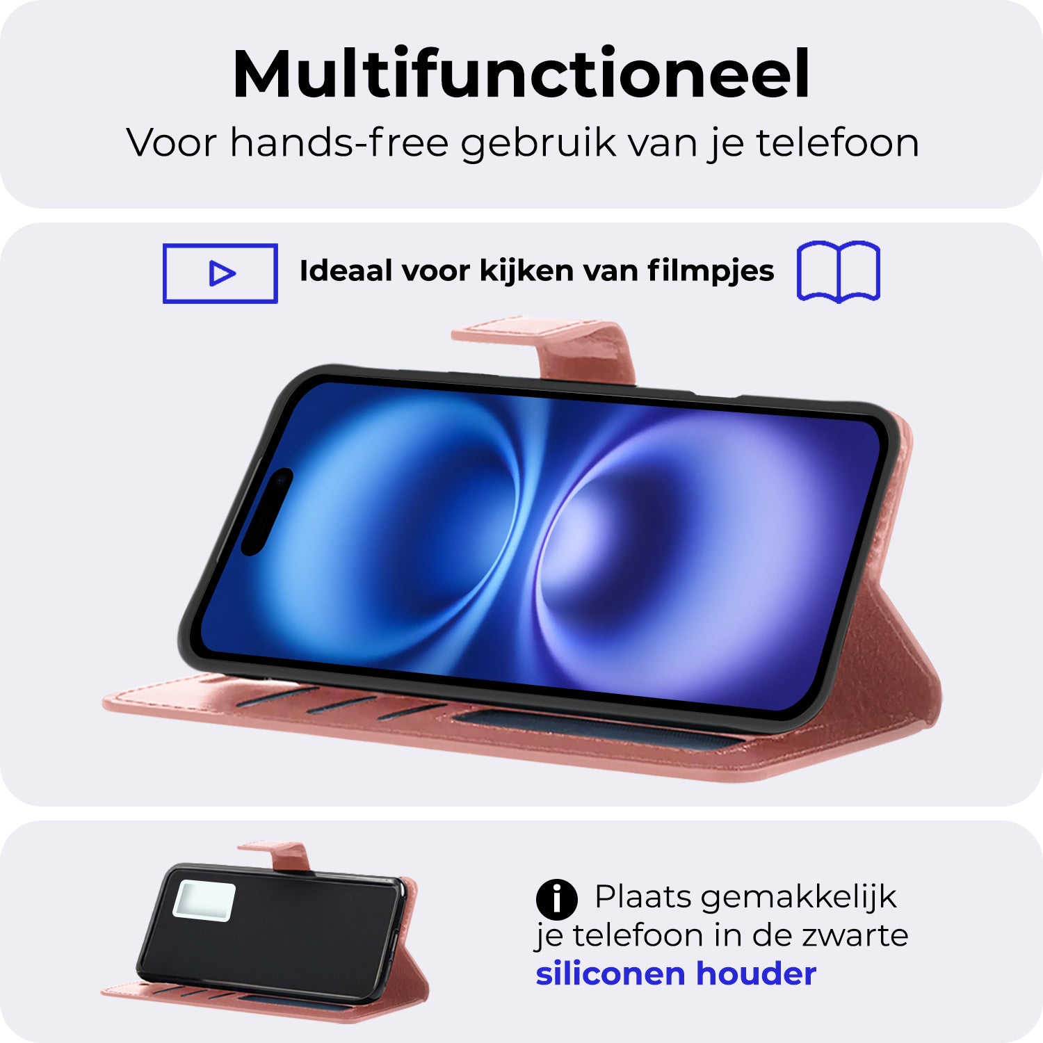 iPhone 16 Hoesje Bookcase Cover met Kaarthouder - Rosé goud
