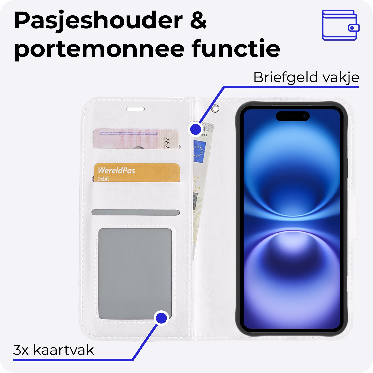 - Ruimte voor pasjes en briefgeld
