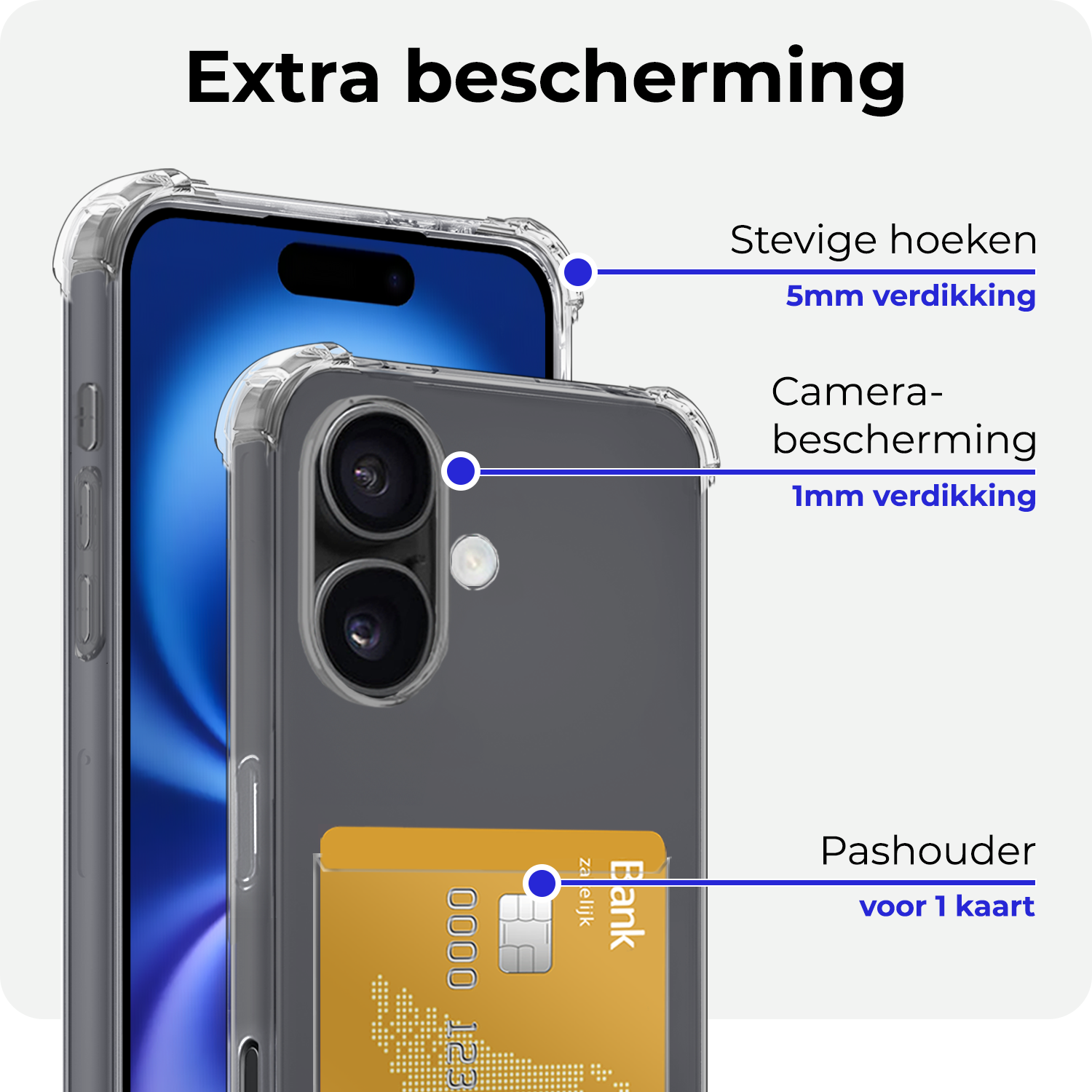 Stevig en praktisch shockproof hoesje met pashouder voor de iPhone 16