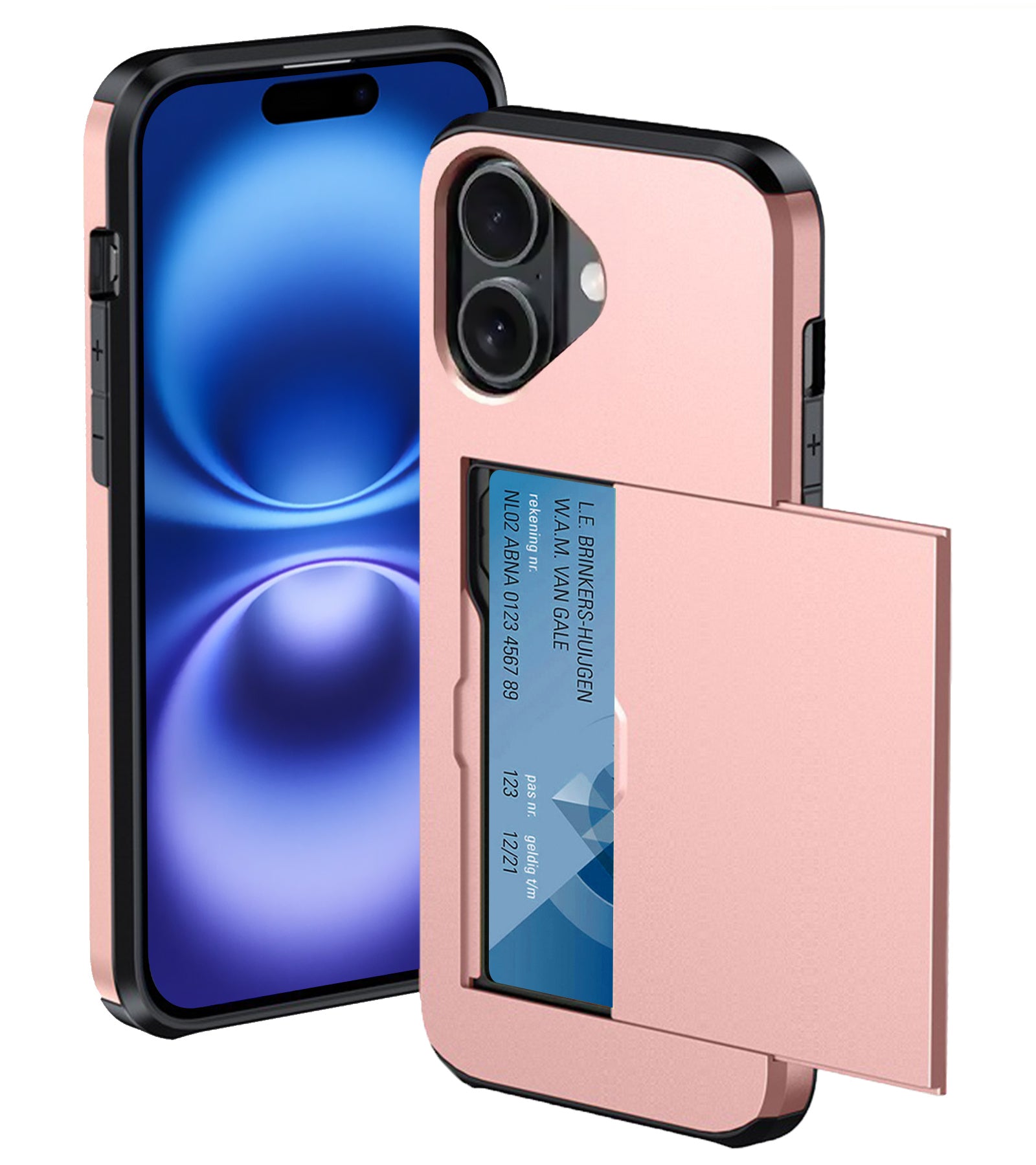 iPhone 16 Hoesje Kaarthouder Hard Case Shockproof - Rosé goud