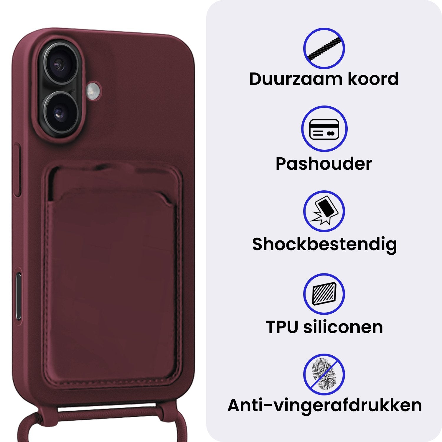 iPhone 16 Hoesje Met Telefoonkoord en Pasjeshouder Siliconen - Aubergine