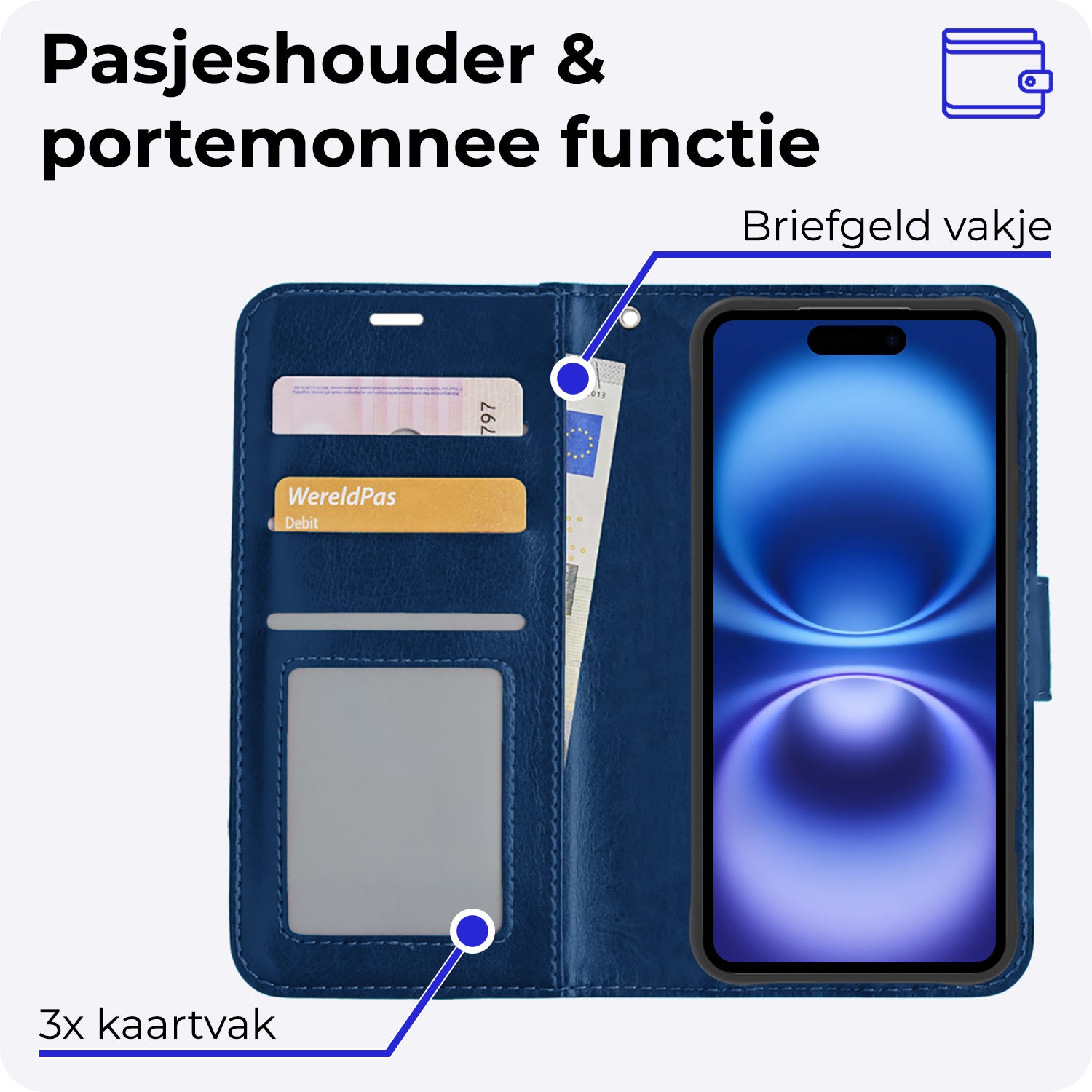 iPhone 16 Plus Hoesje Bookcase Cover met Kaarthouder - Donkerblauw