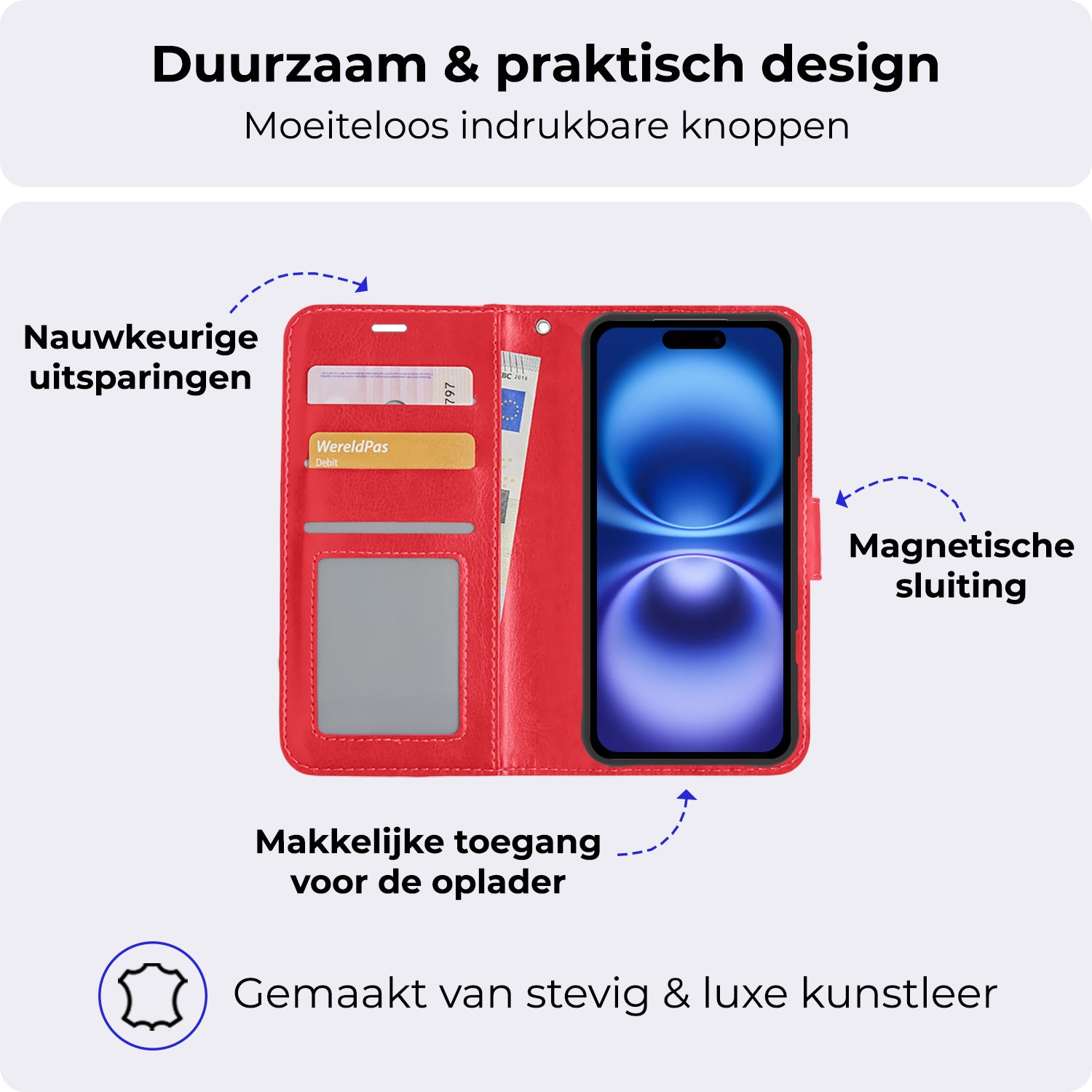iPhone 16 Plus Hoesje Bookcase Cover met Kaarthouder - Rood