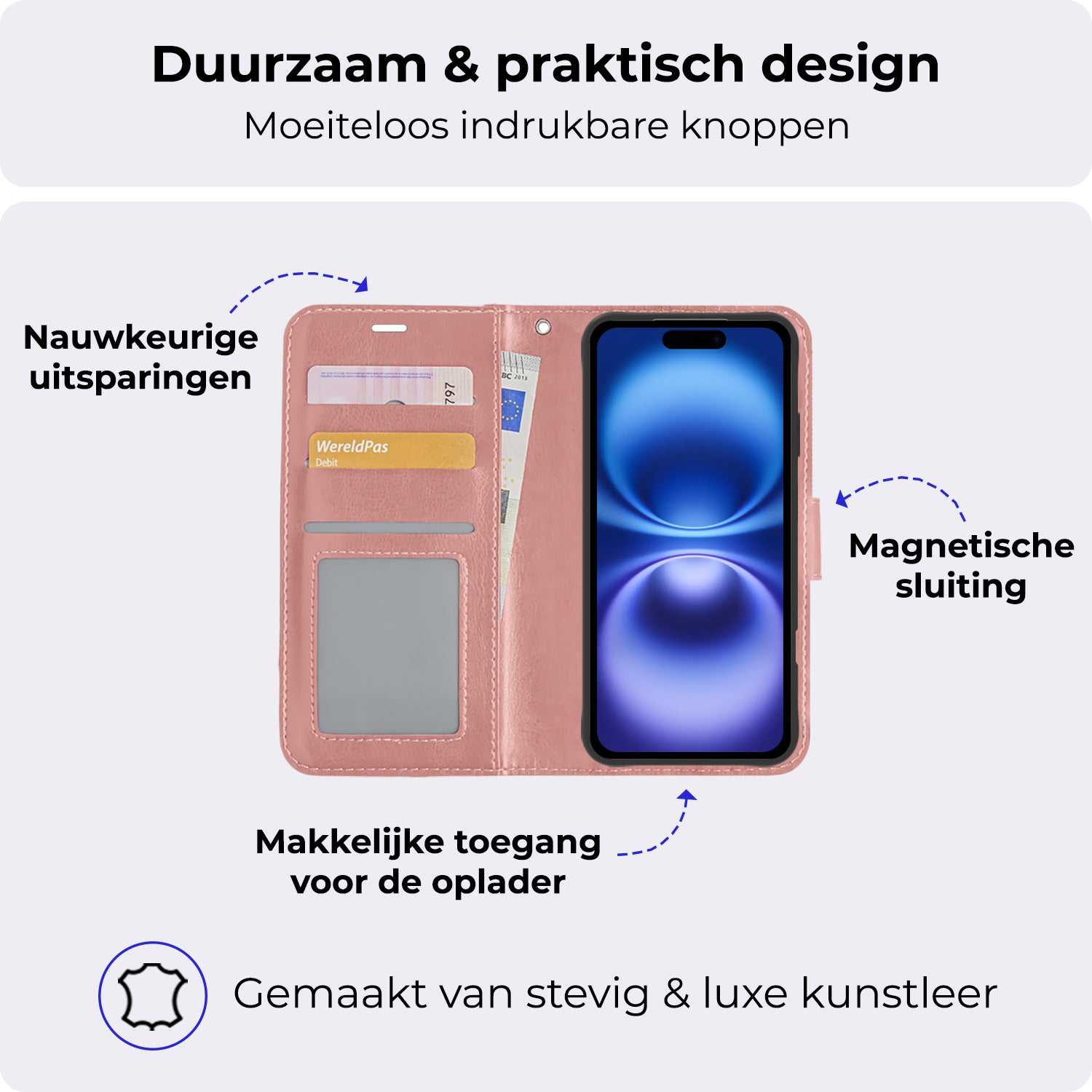 iPhone 16 Plus Hoesje Bookcase Cover met Kaarthouder - Rosé goud