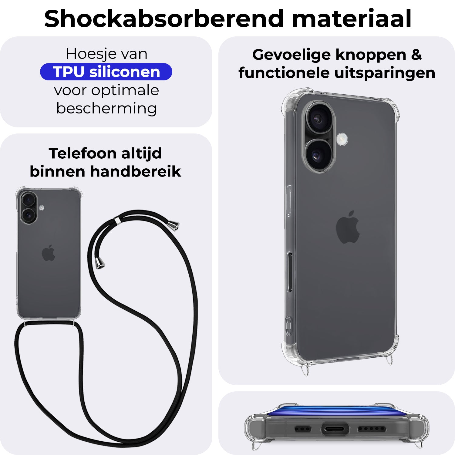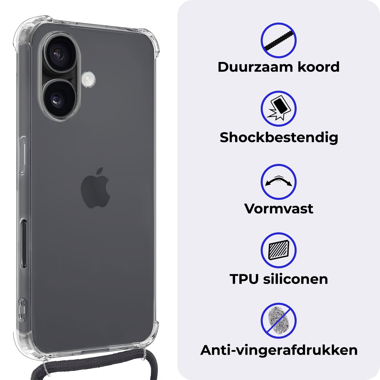 iPhone 16 Plus Hoesje met Koord Backcover Shockproof - Transparant