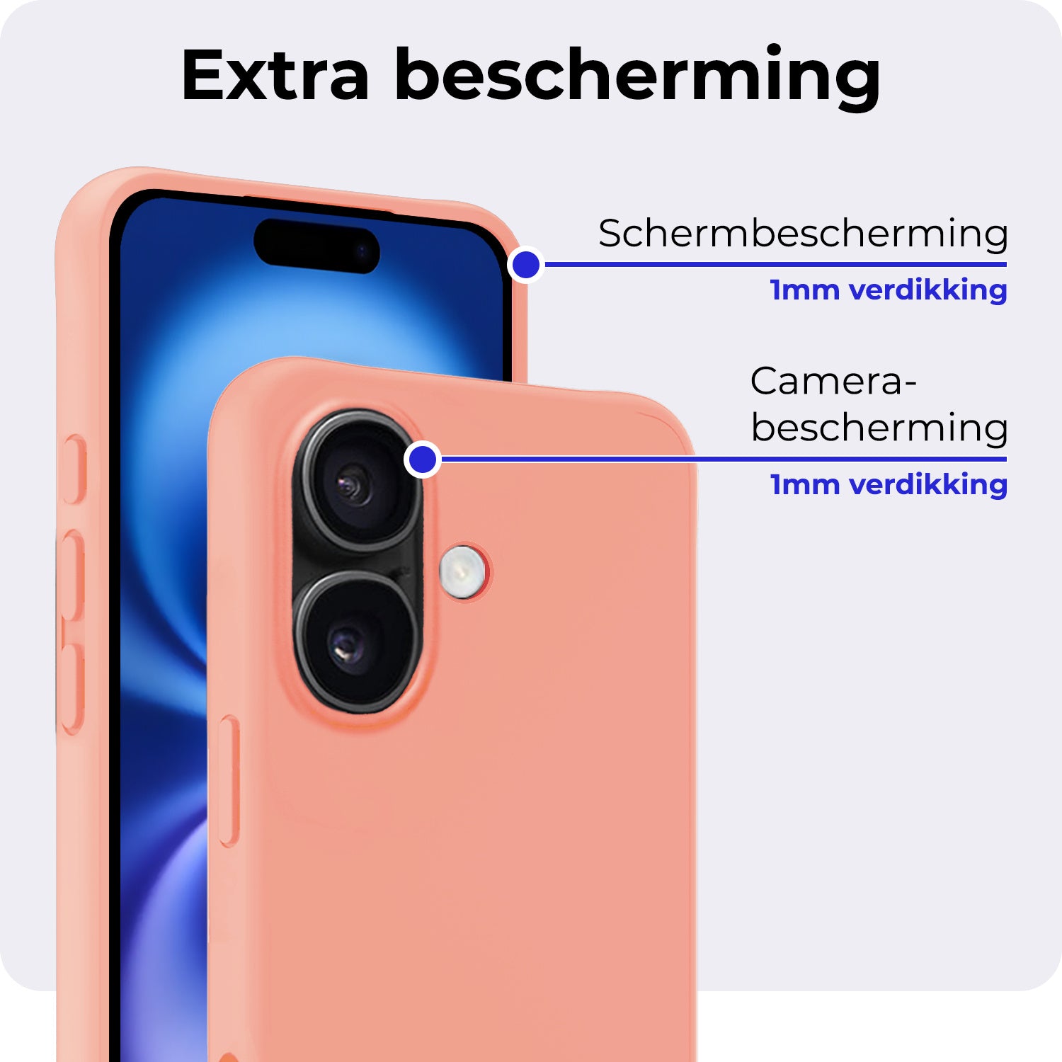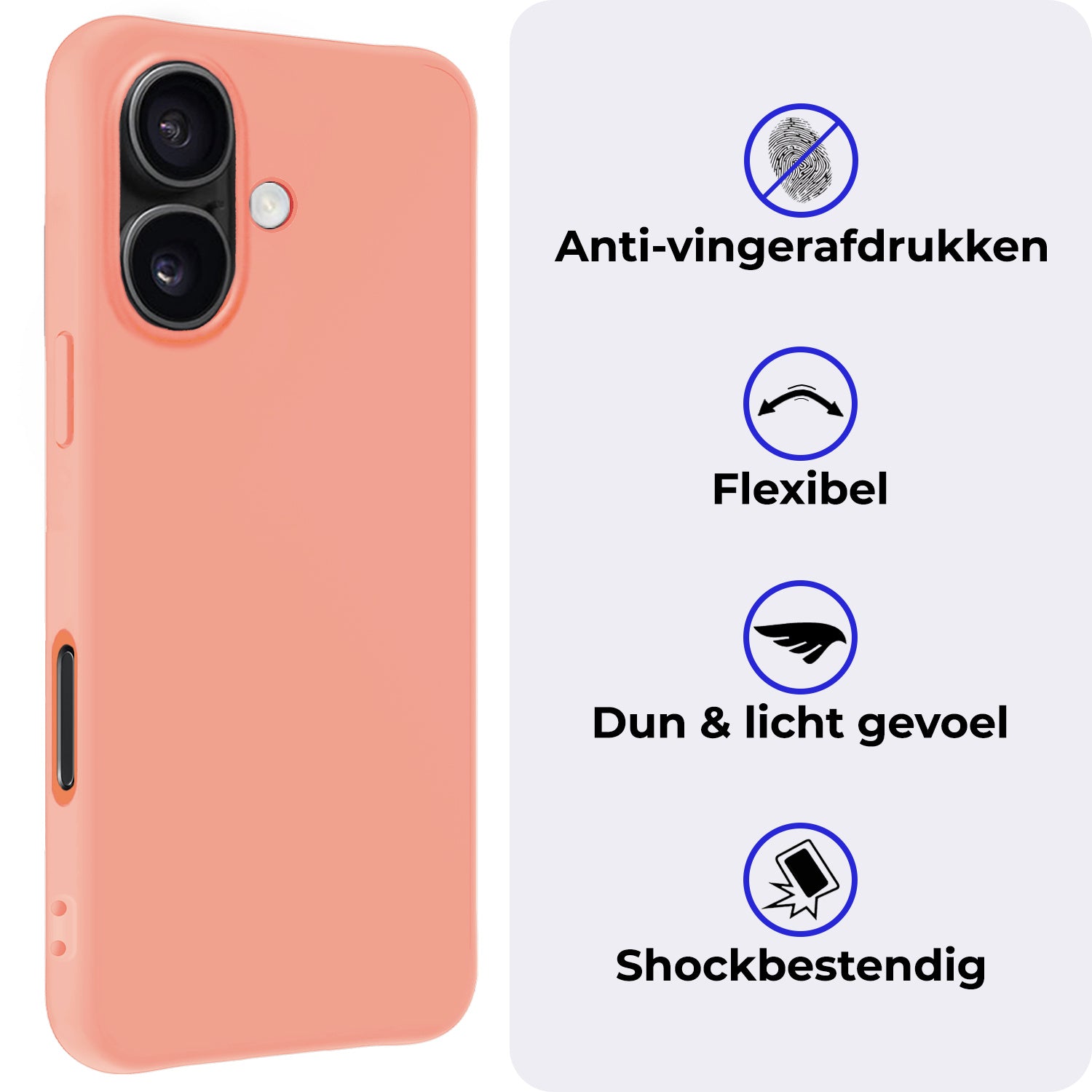 Dit siliconen hoesje voor de iPhone 16 Plus is gemaakt van flexibel en schokabsorberend TPU-materiaal, waardoor het je toestel optimaal beschermt tegen vallen en stoten. De verhoogde randen rond het scherm en de camera voorkomen directe contactschade bij neerleggen op vlakke oppervlakken. Bovendien is het siliconen materiaal scheur- en slijtvast, wat een lange levensduur garandeert.