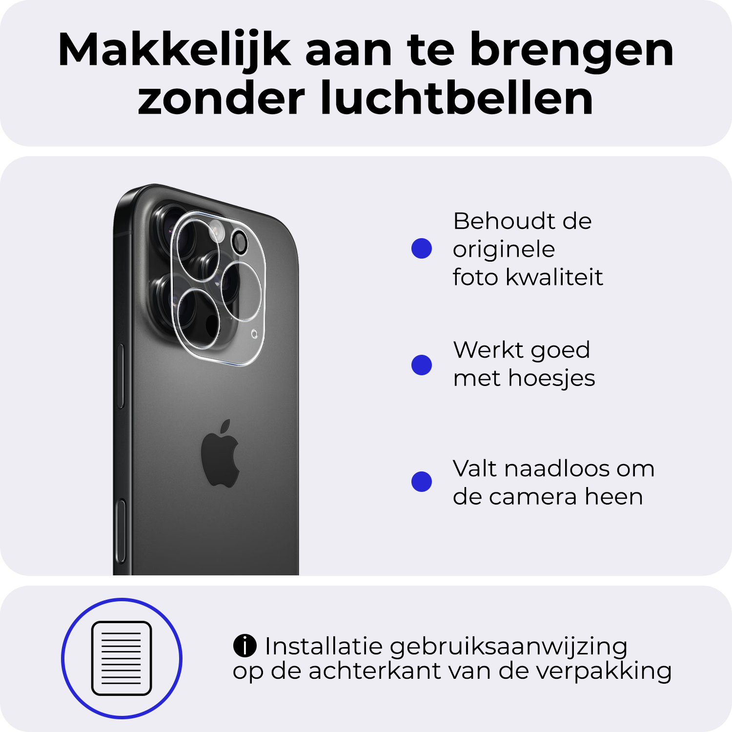 - Voorkomt krassen en barsten op de cameralens