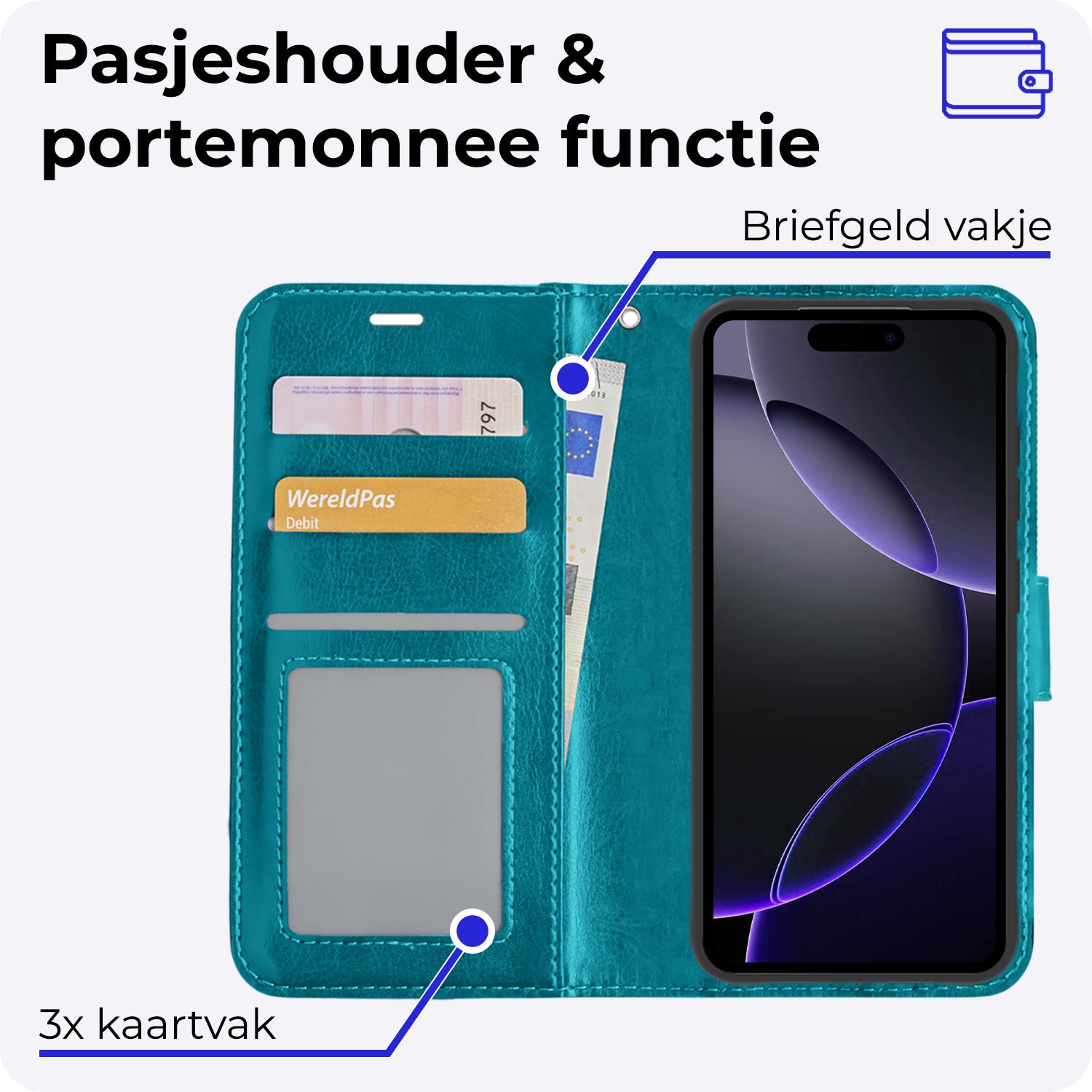 iPhone 16 Pro Hoesje Bookcase Cover met Kaarthouder - Turquoise