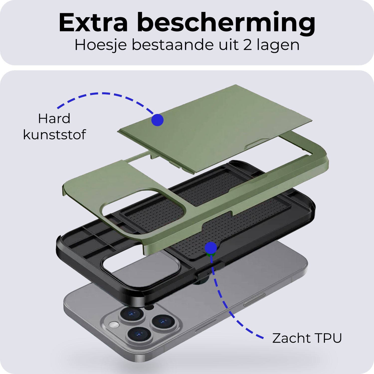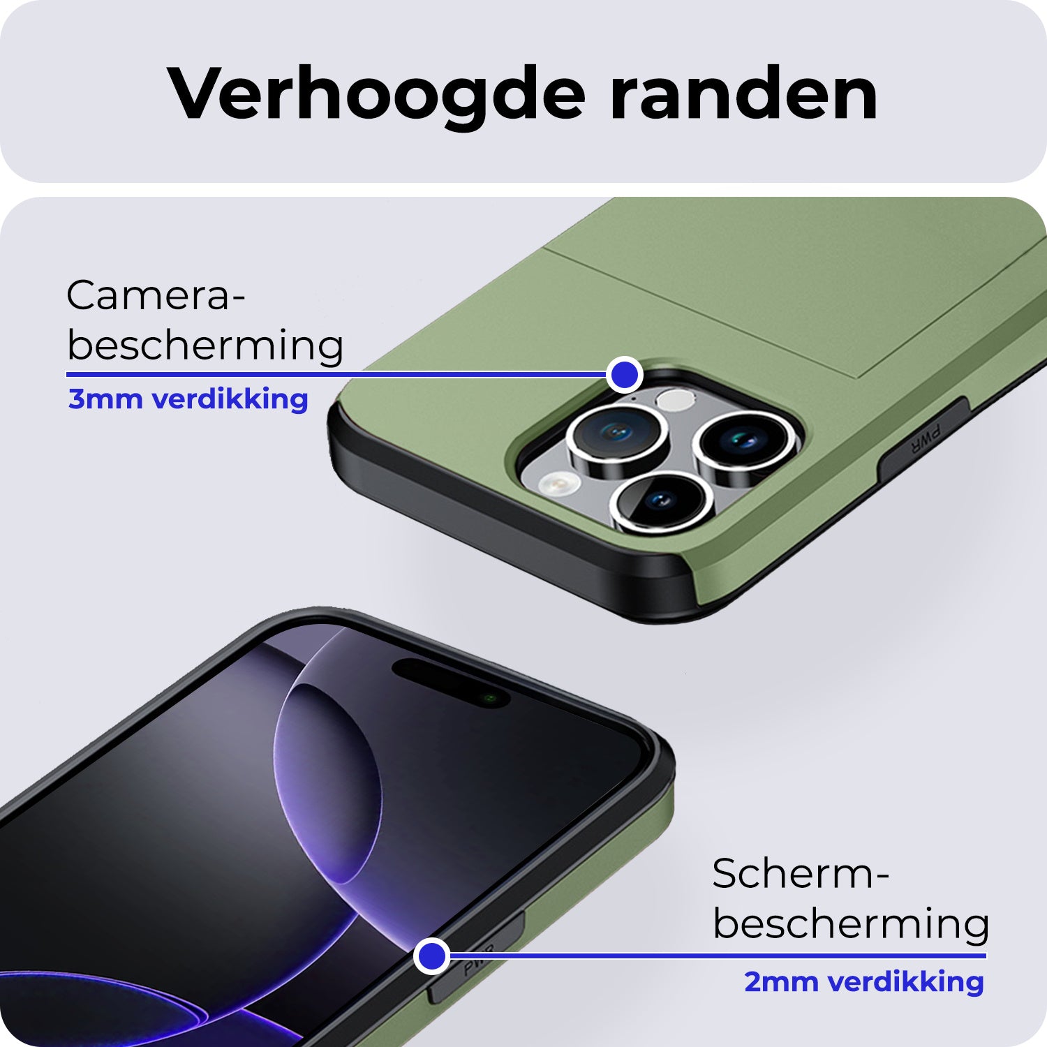 iPhone 16 Pro Hoesje Kaarthouder Hard Case Shockproof - Donkergroen