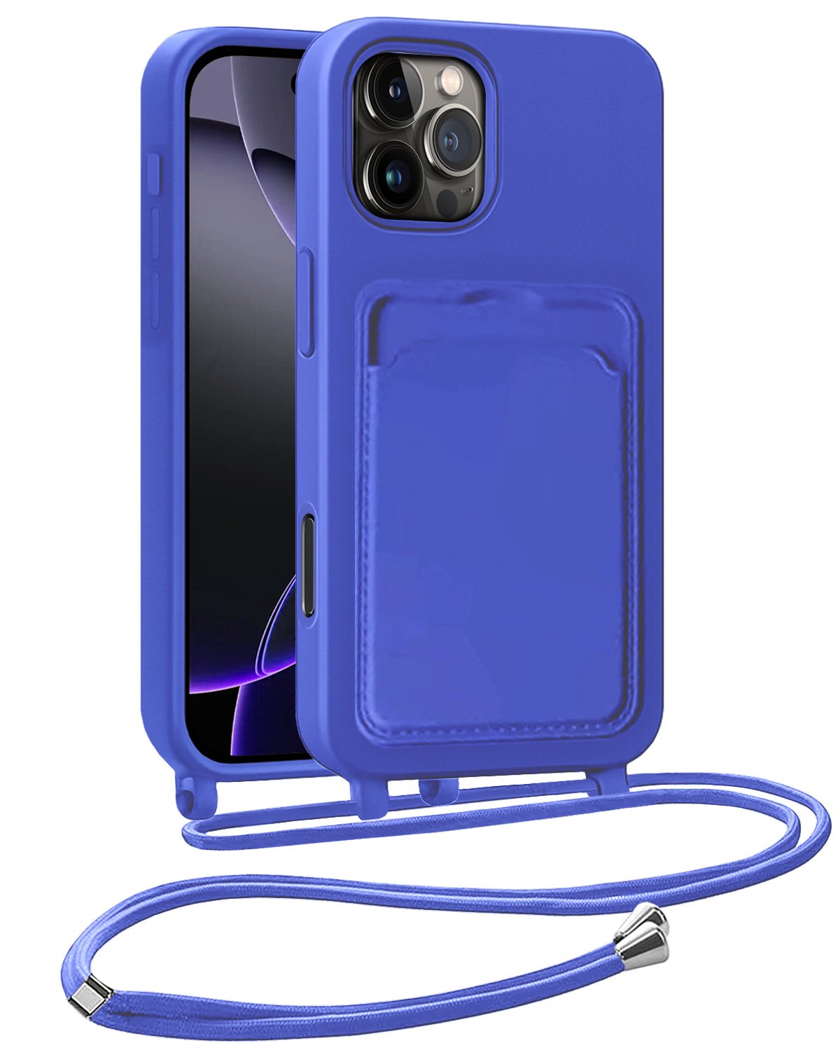 iPhone 16 Pro Hoesje Met Telefoonkoord en Pasjeshouder Siliconen - Felblauw