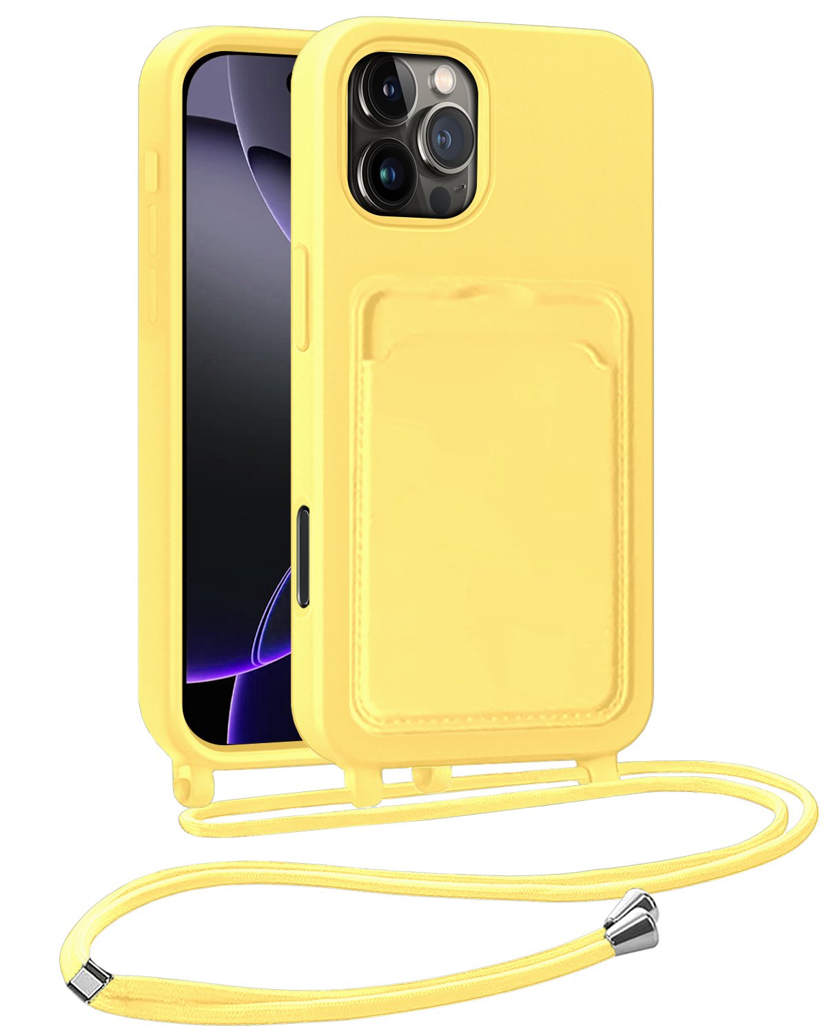 iPhone 16 Pro Hoesje Met Telefoonkoord en Pasjeshouder Siliconen - Geel