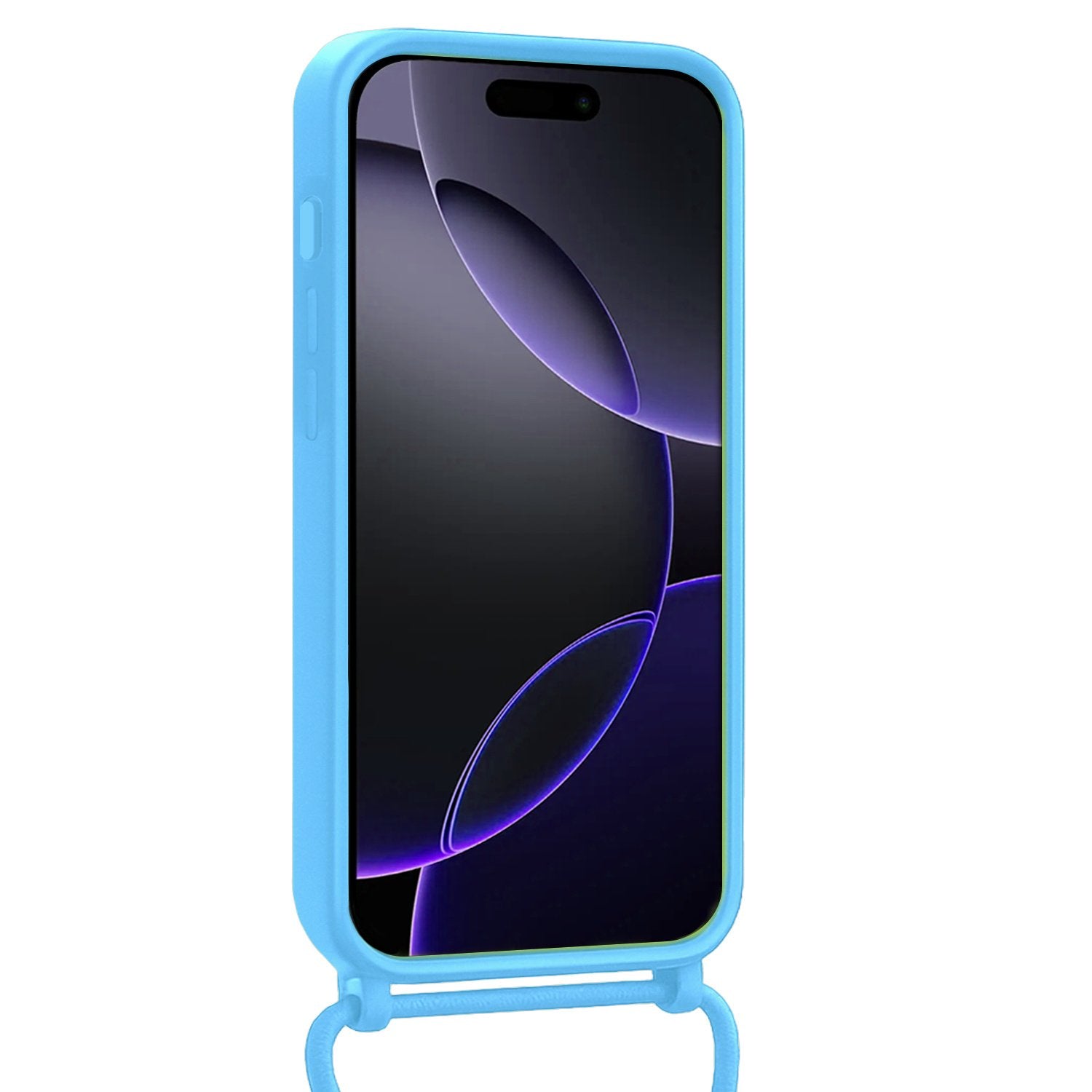 iPhone 16 Pro Hoesje Met Telefoonkoord en Pasjeshouder Siliconen - Lichtblauw
