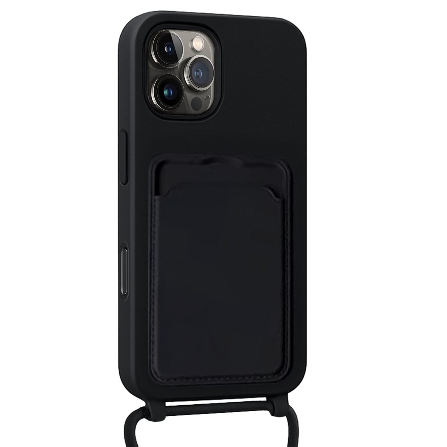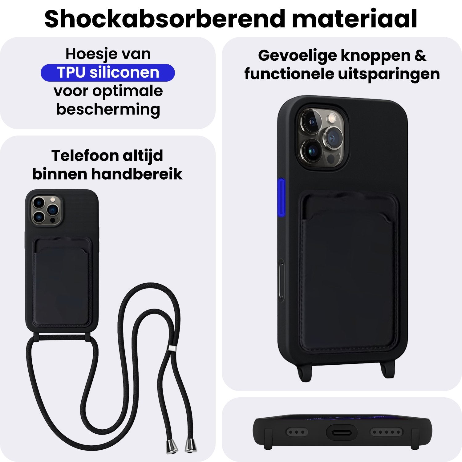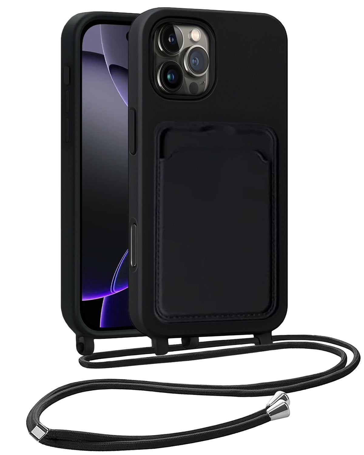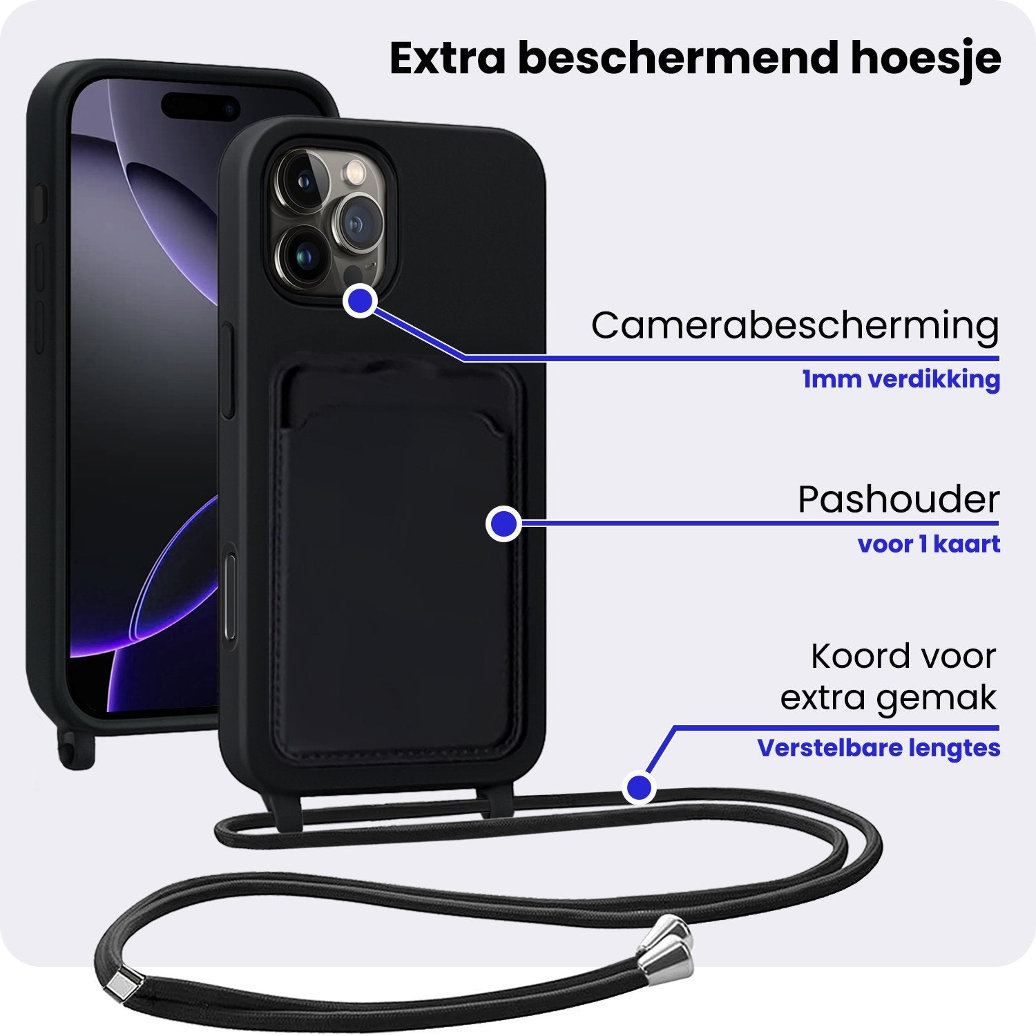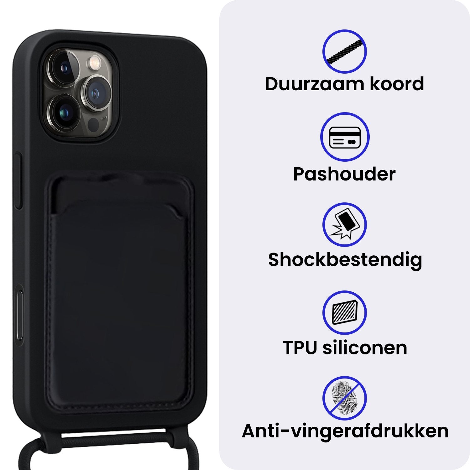 iPhone 16 Pro Hoesje Met Telefoonkoord en Pasjeshouder Siliconen - Zwart