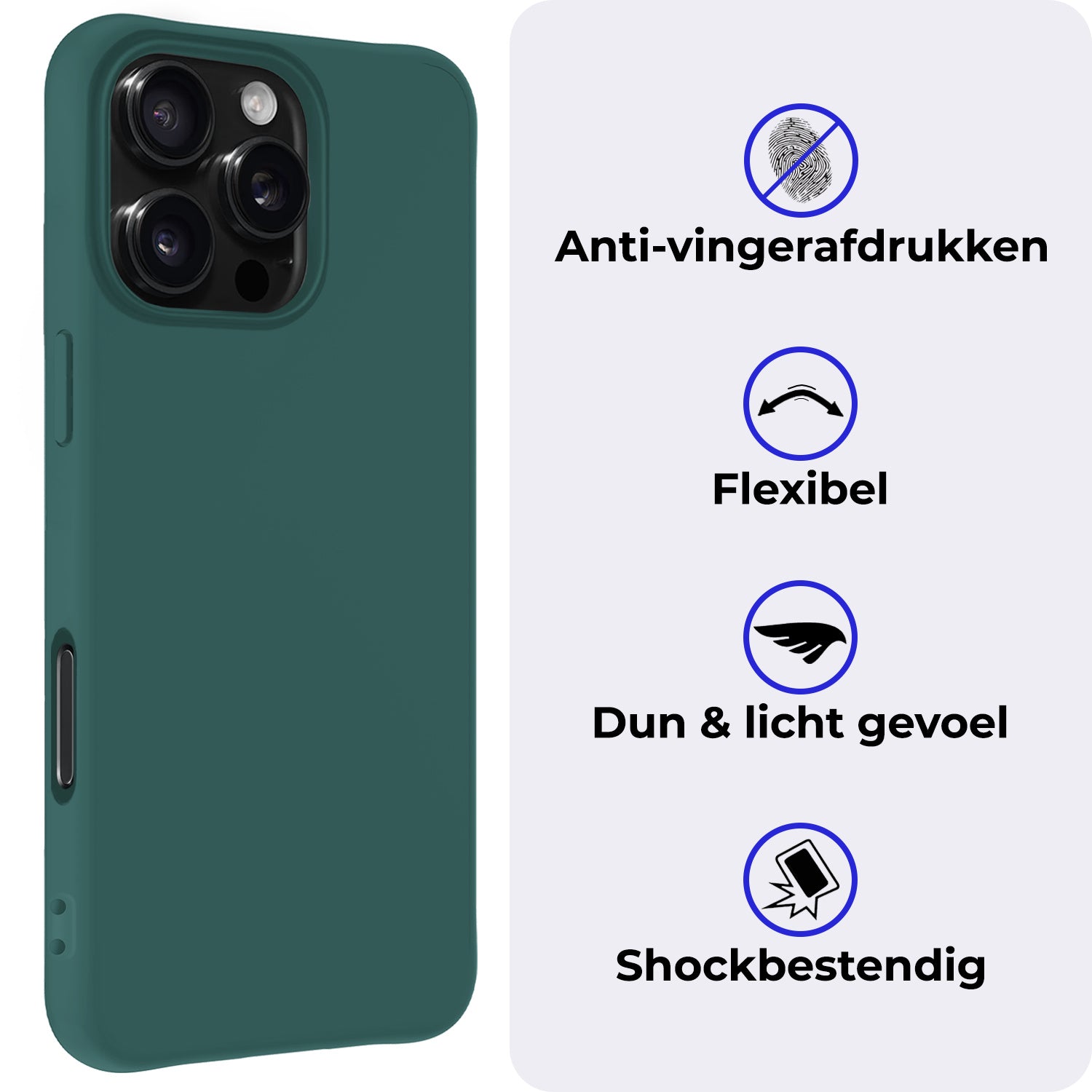 iPhone 16 Pro Hoesje Siliconen Backcover Lichtgewicht - Donkergroen