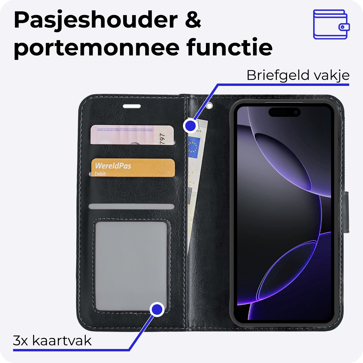 iPhone 16 Pro Max Hoesje Bookcase Cover met Kaarthouder - Zwart