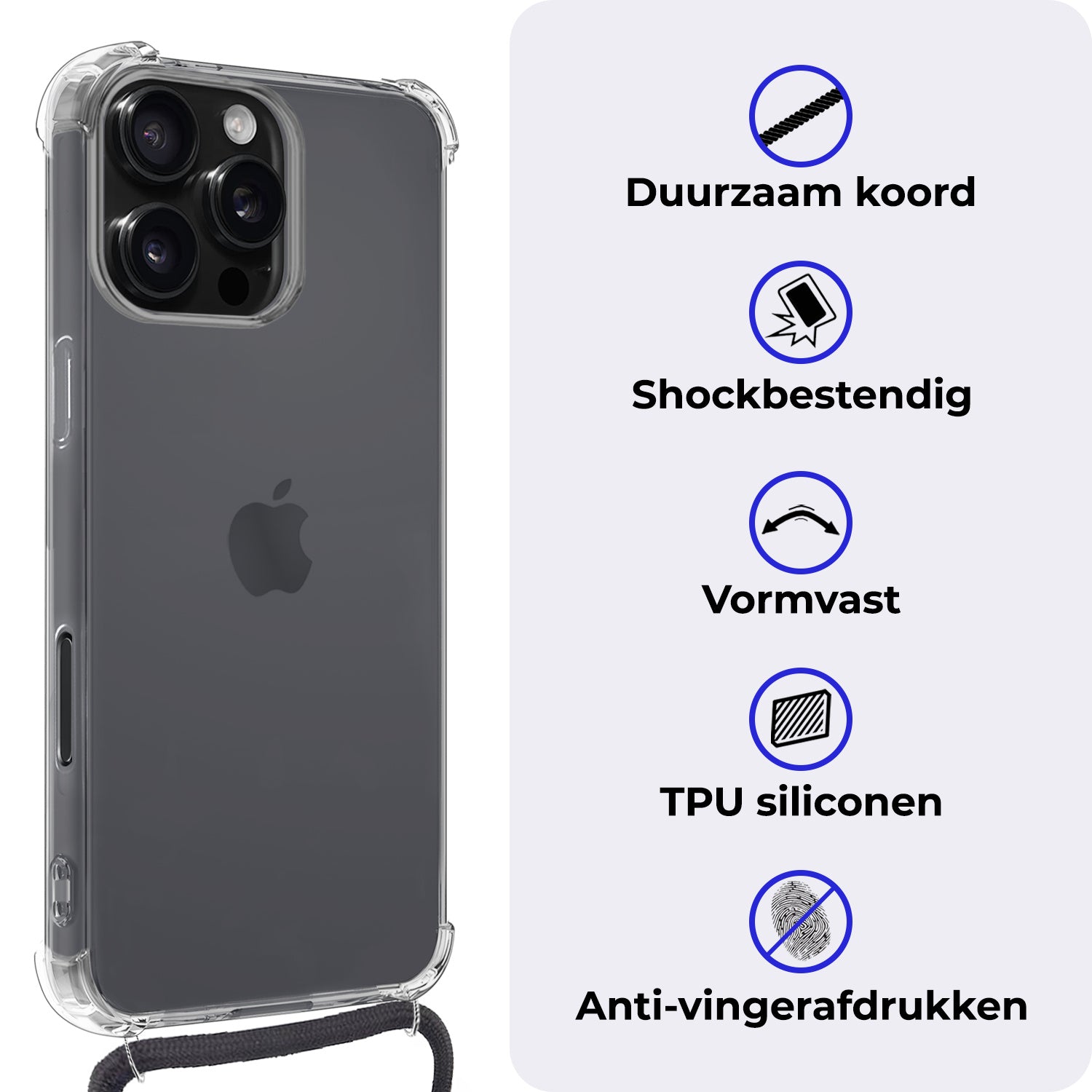 Stevig en praktisch shockproof hoesje met koord voor de iPhone 16 Pro Max