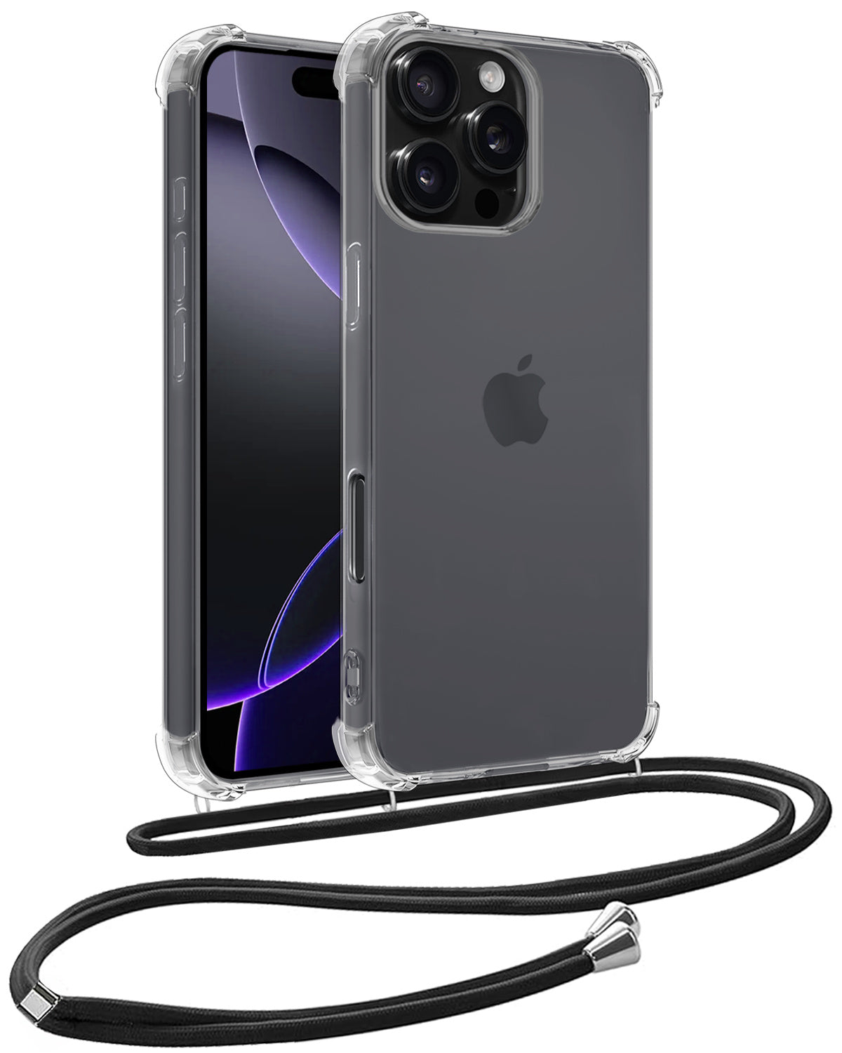 Maak je ervaring compleet met dit stevige en functionele shockproof hoesje met koord voor de iPhone 16 Pro Max. **Bestel nu en geniet van de perfecte balans tussen bescherming, gemak en stijl!**