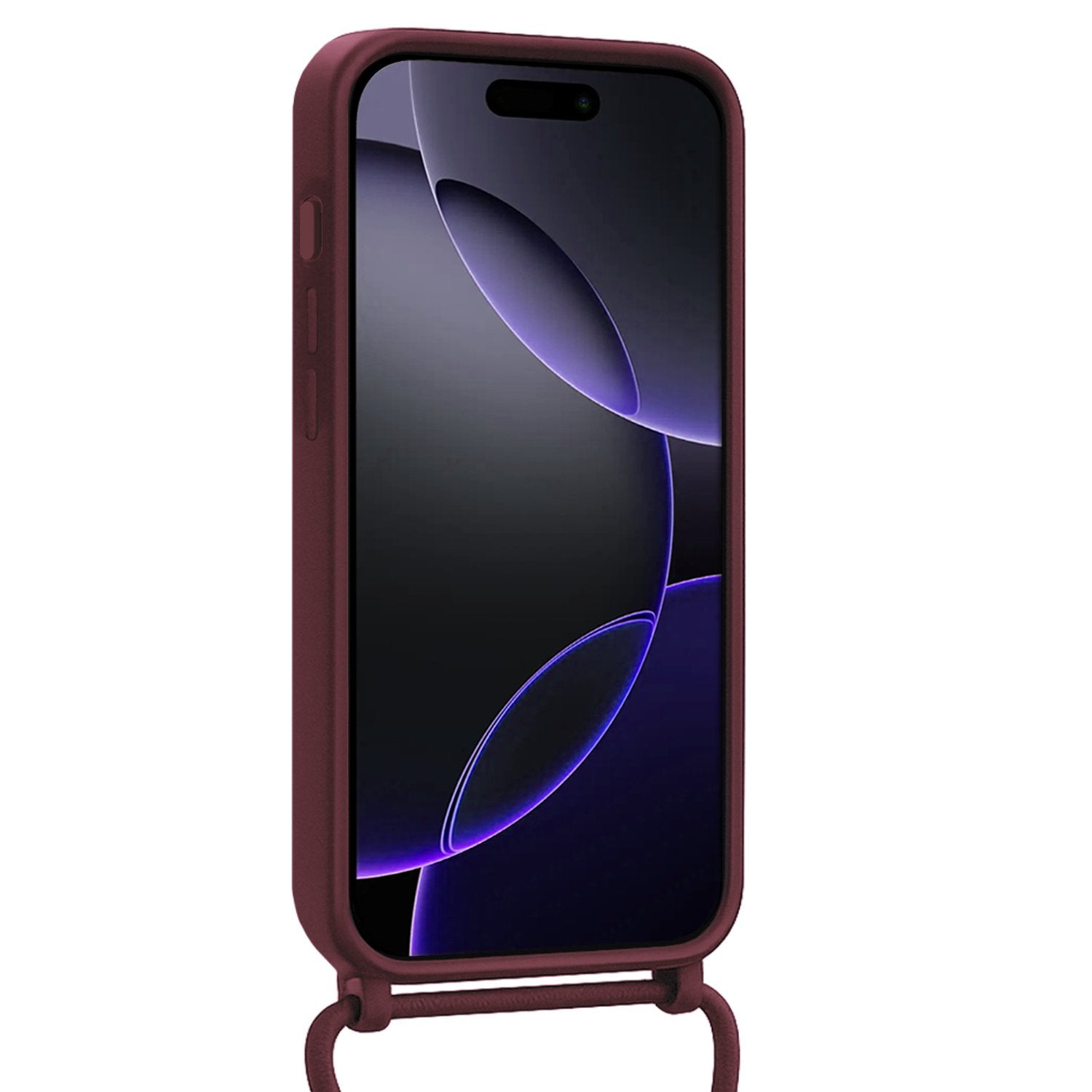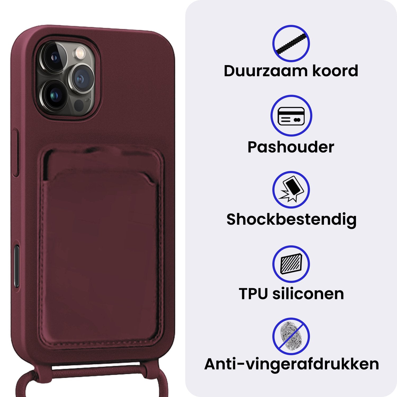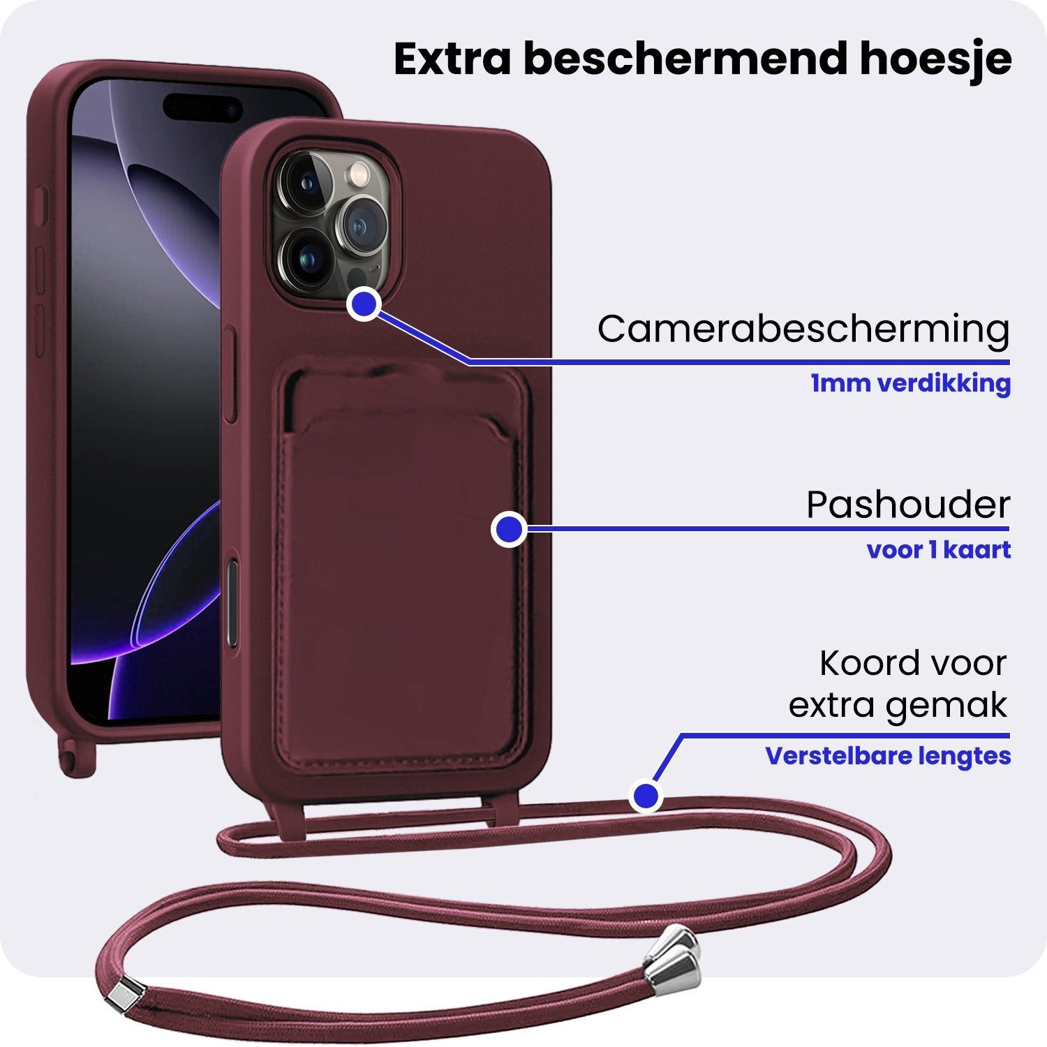 iPhone 16 Pro Max Hoesje Met Telefoonkoord en Pasjeshouder Siliconen - Aubergine