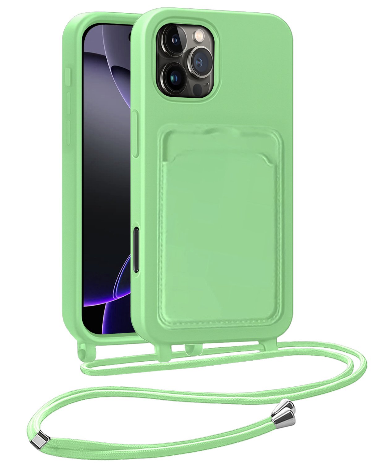 iPhone 16 Pro Max Hoesje Met Telefoonkoord en Pasjeshouder Siliconen - Groen