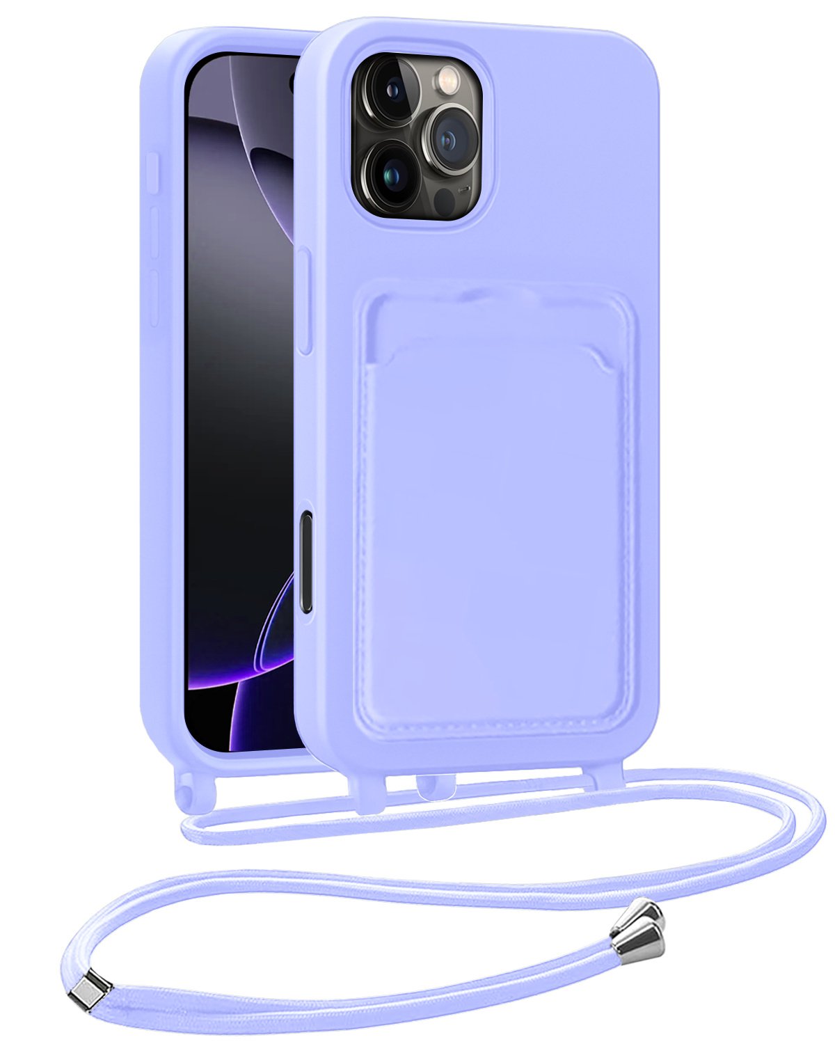 iPhone 16 Pro Max Hoesje Met Telefoonkoord en Pasjeshouder Siliconen - Lila