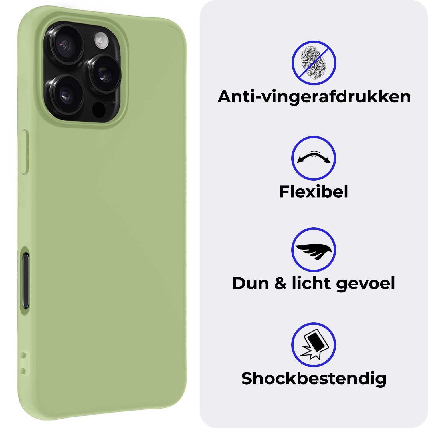 Dit siliconen hoesje voor de iPhone 16 Pro Max is gemaakt van flexibel en schokabsorberend TPU-materiaal, waardoor het je toestel optimaal beschermt tegen vallen en stoten. De verhoogde randen rond het scherm en de camera voorkomen directe contactschade bij neerleggen op vlakke oppervlakken. Bovendien is het siliconen materiaal scheur- en slijtvast, wat een lange levensduur garandeert.