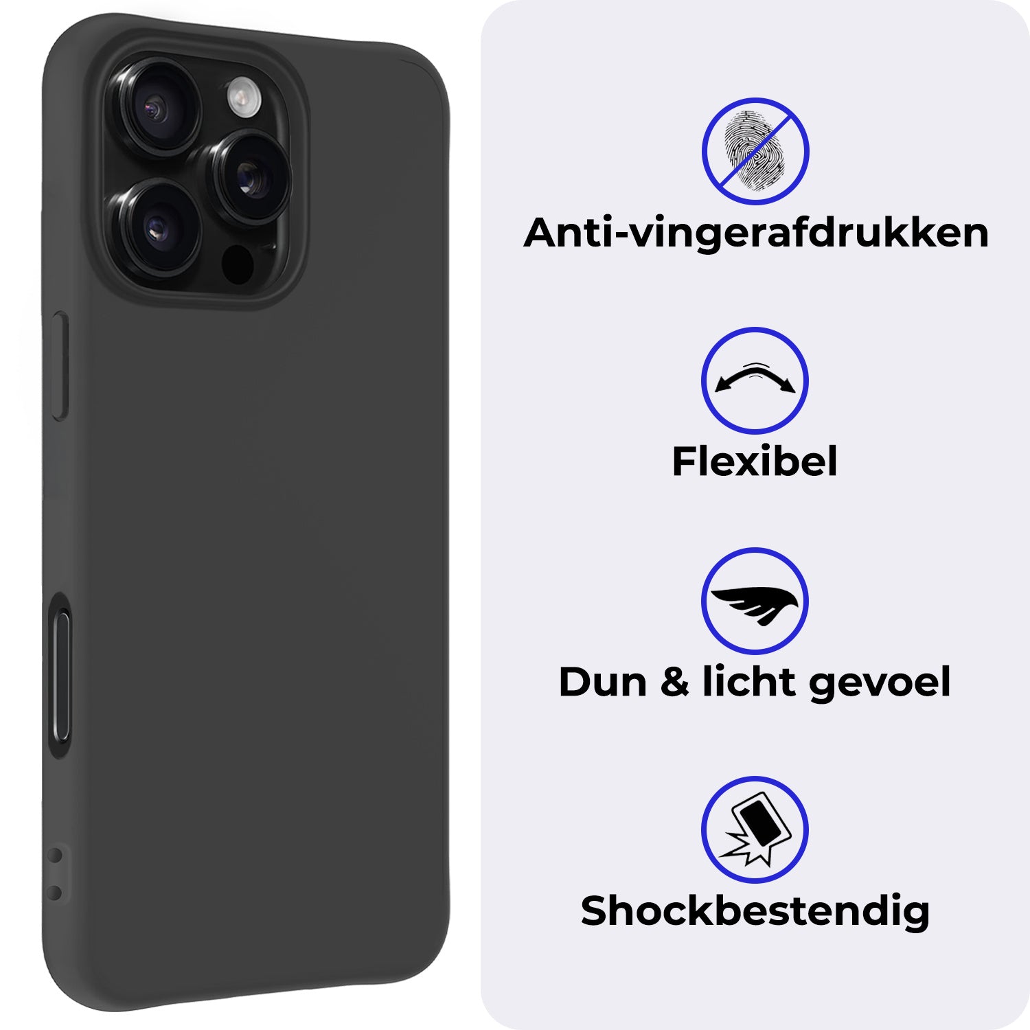 iPhone 16 Pro Max Hoesje Siliconen Backcover Lichtgewicht - Zwart
