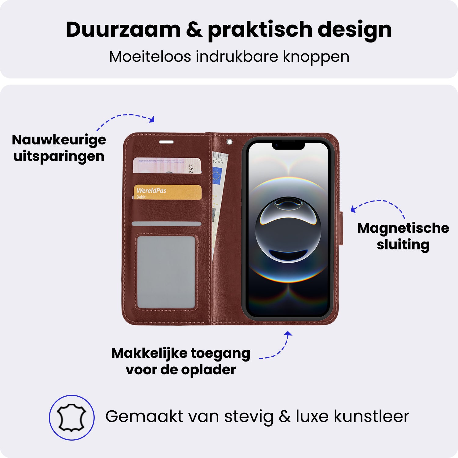 iPhone 16e Hoesje Bookcase Cover met Kaarthouder - Bruin