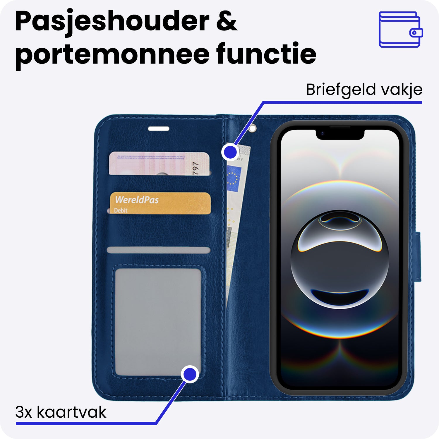 iPhone 16e Hoesje Bookcase Cover met Kaarthouder - Donkerblauw