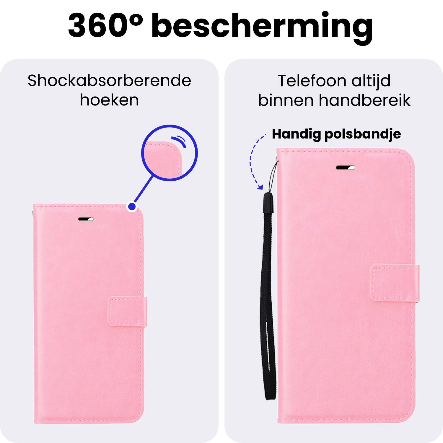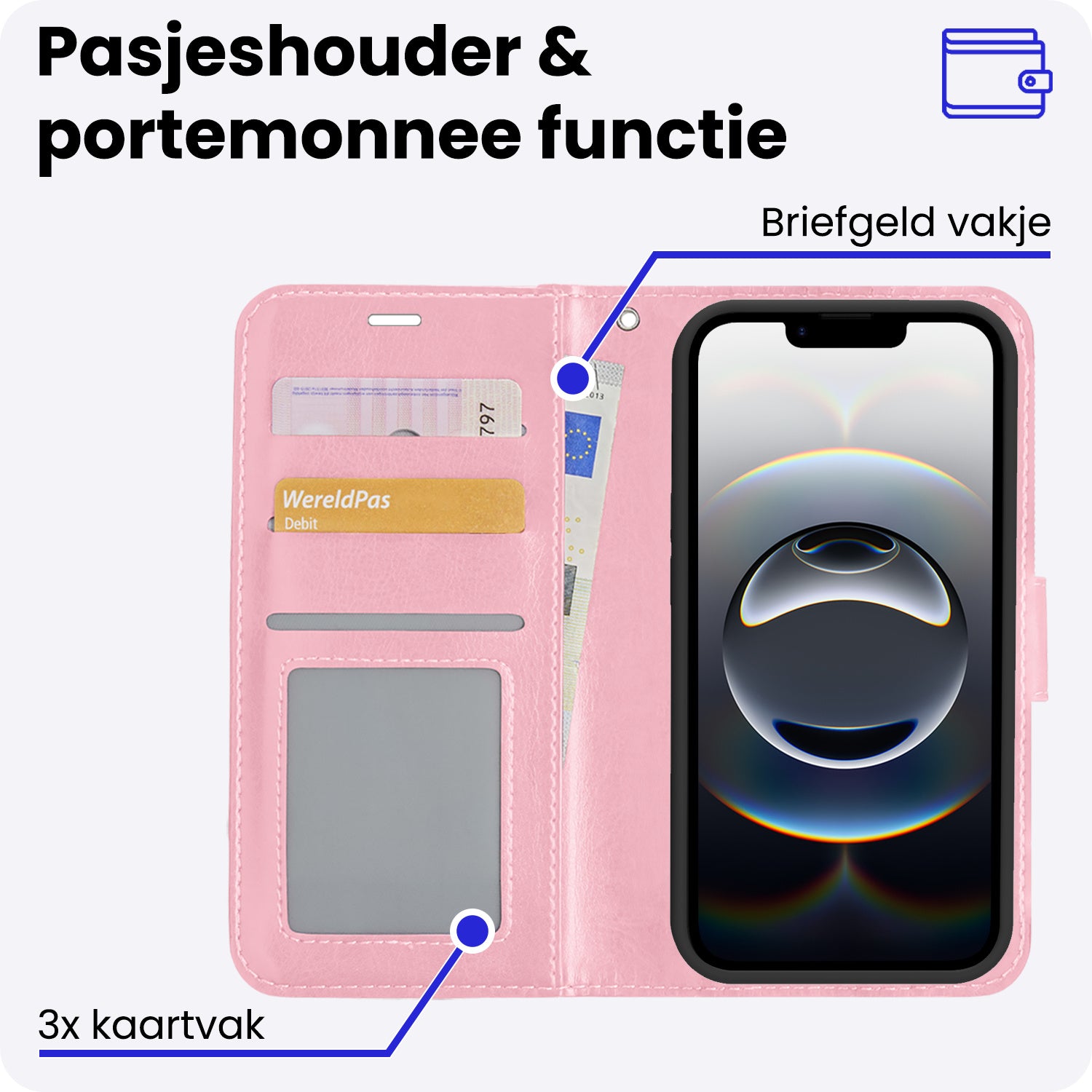 iPhone 16e Hoesje Bookcase Cover met Kaarthouder - Lichtroze