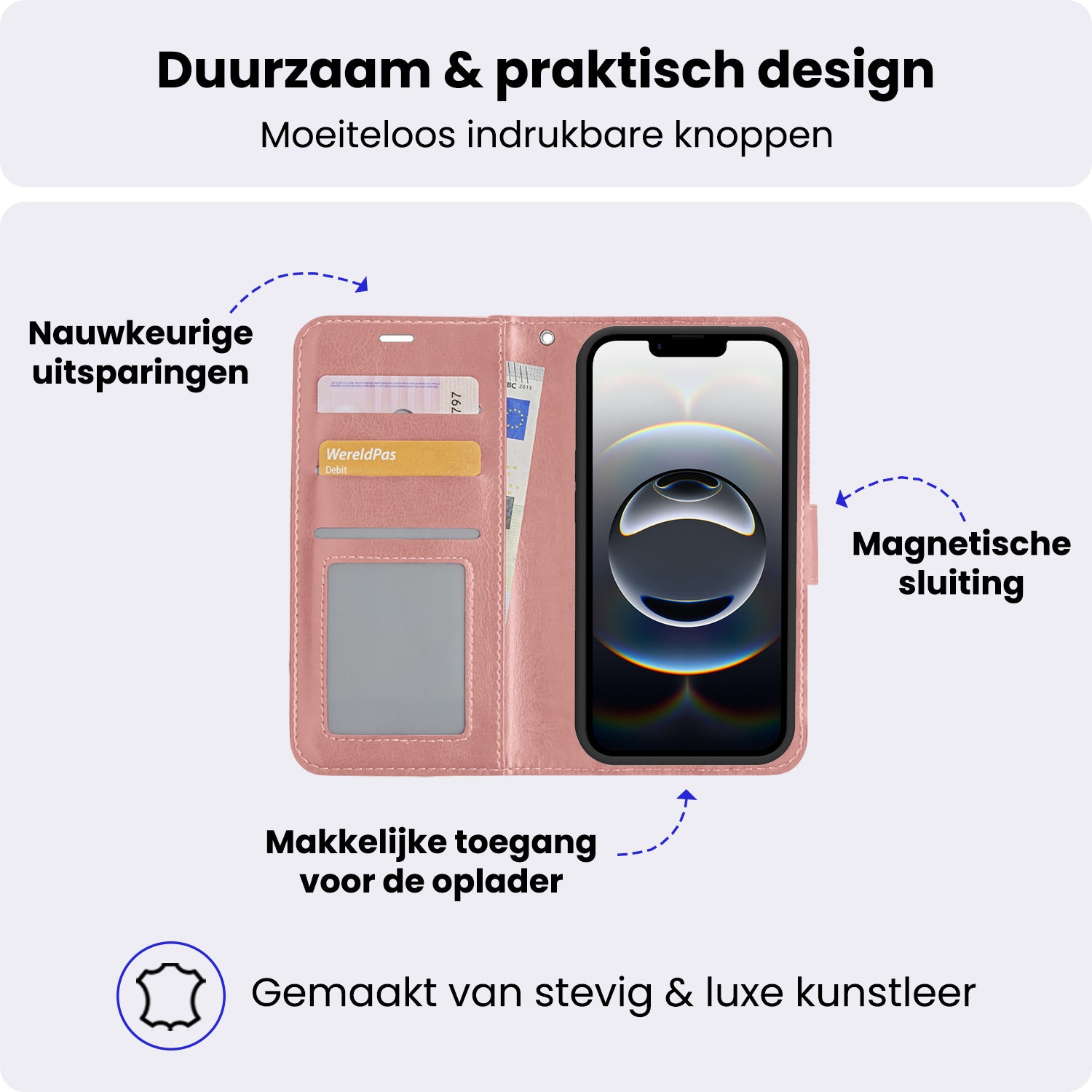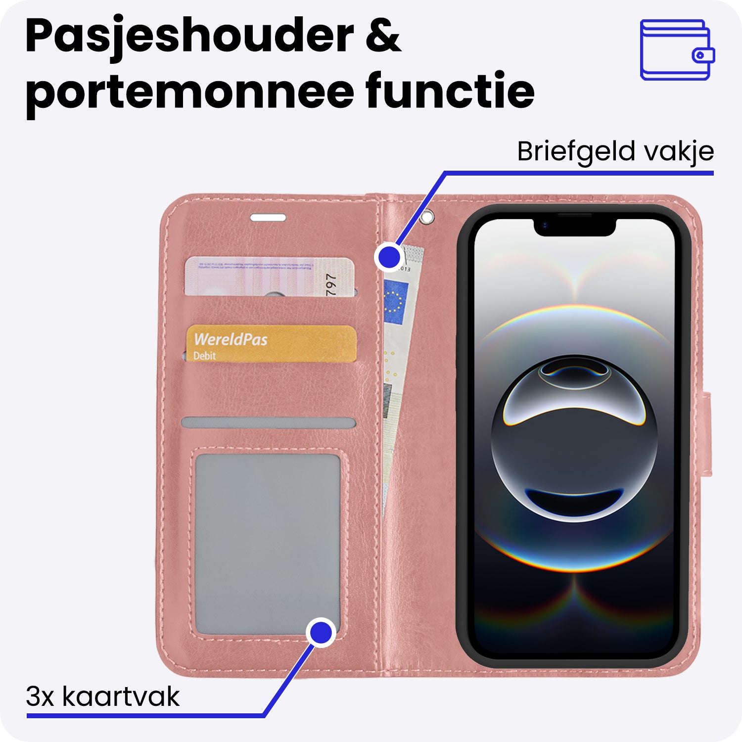 - Ruimte voor pasjes en briefgeld