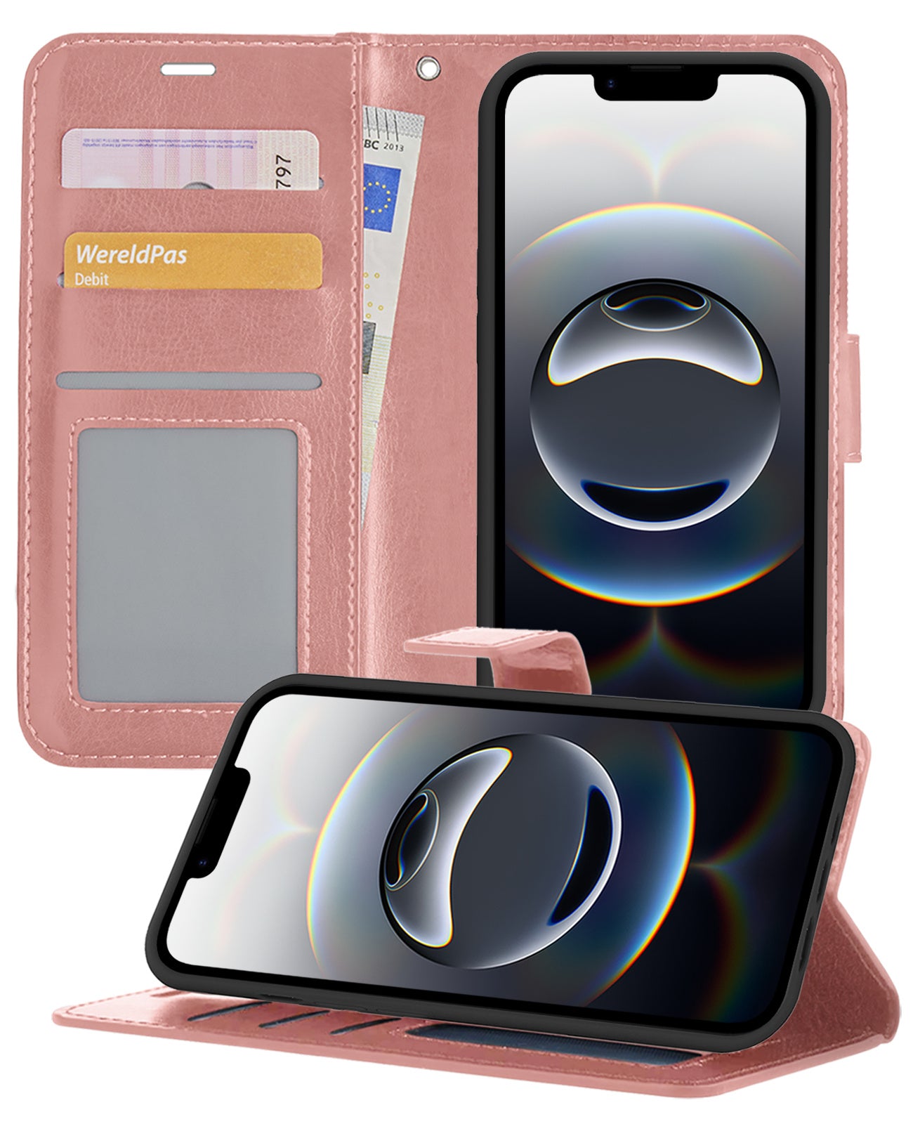 iPhone 16e Hoesje Bookcase Cover met Kaarthouder - Rosé goud