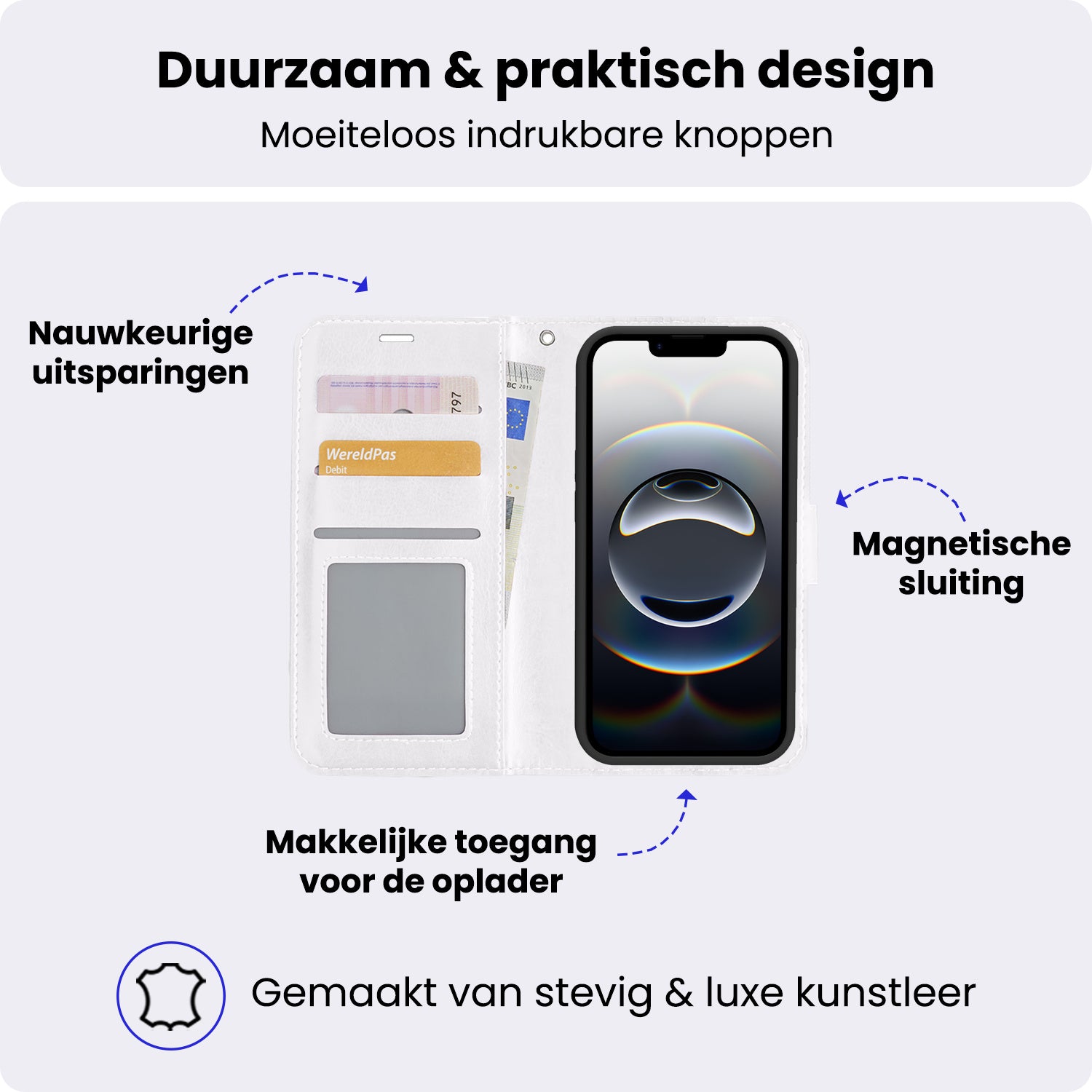 - Ruimte voor pasjes en briefgeld