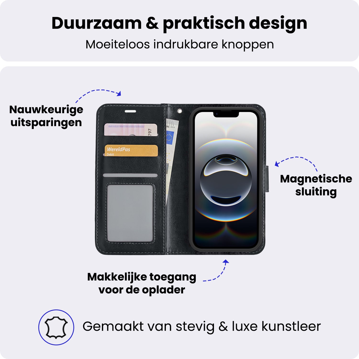 iPhone 16e Hoesje Bookcase Cover met Kaarthouder - Zwart
