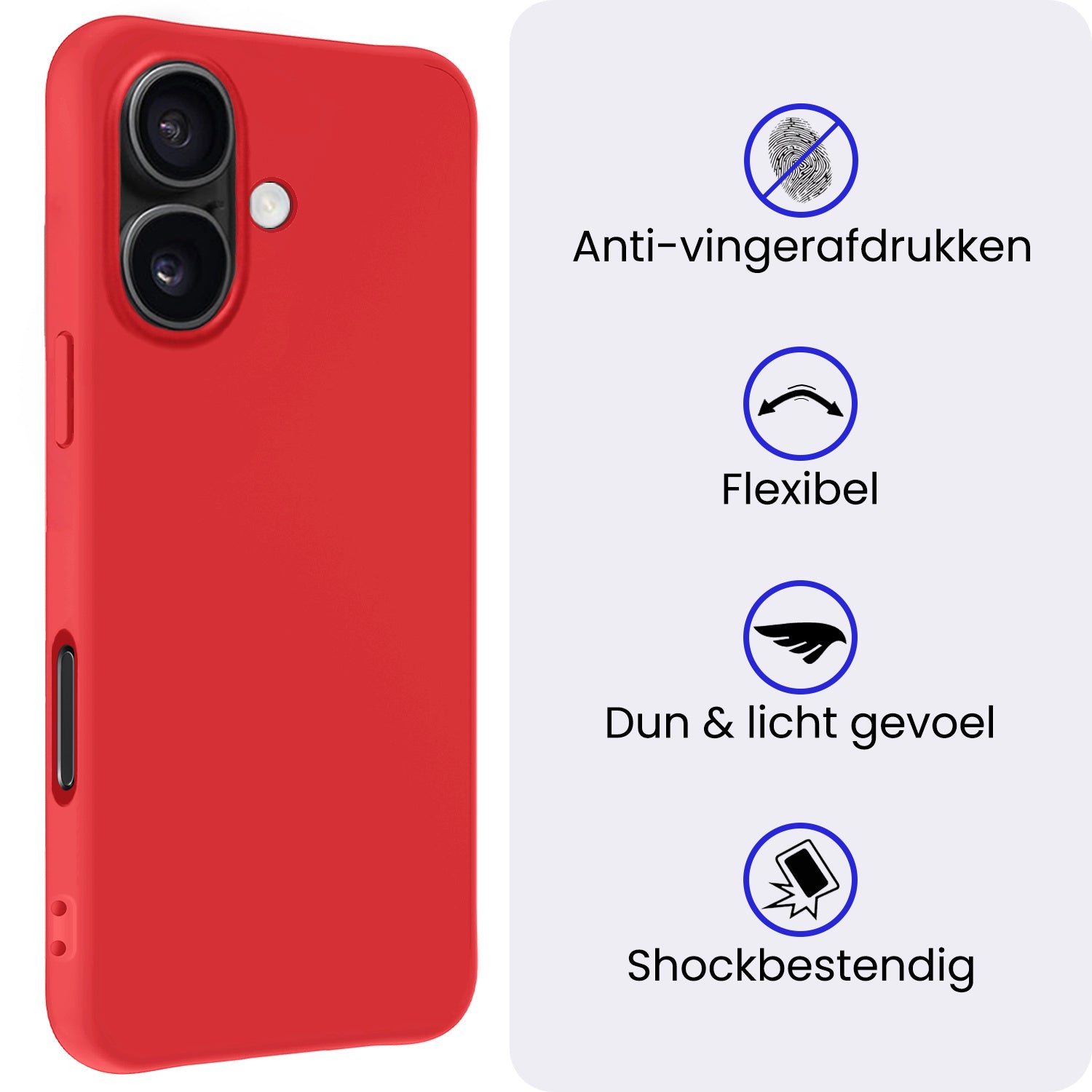 Dit hoesje is verkrijgbaar in verschillende kleuren, zodat je eenvoudig een stijl kiest die bij je past. Ga voor een neutrale tint voor een subtiele look of kies een opvallende kleur om je iPhone 17 een persoonlijke touch te geven. Voor wie het originele design van de telefoon wil behouden, is er ook een transparante variant beschikbaar.