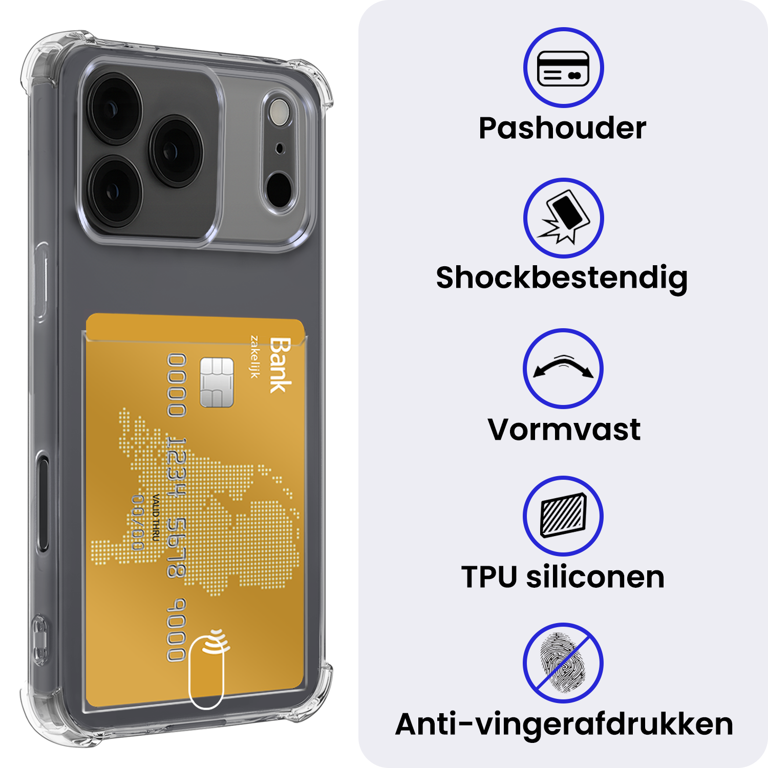 iPhone 17 Pro Hoesje Kaarthouder Backcover Shockproof - Transparant