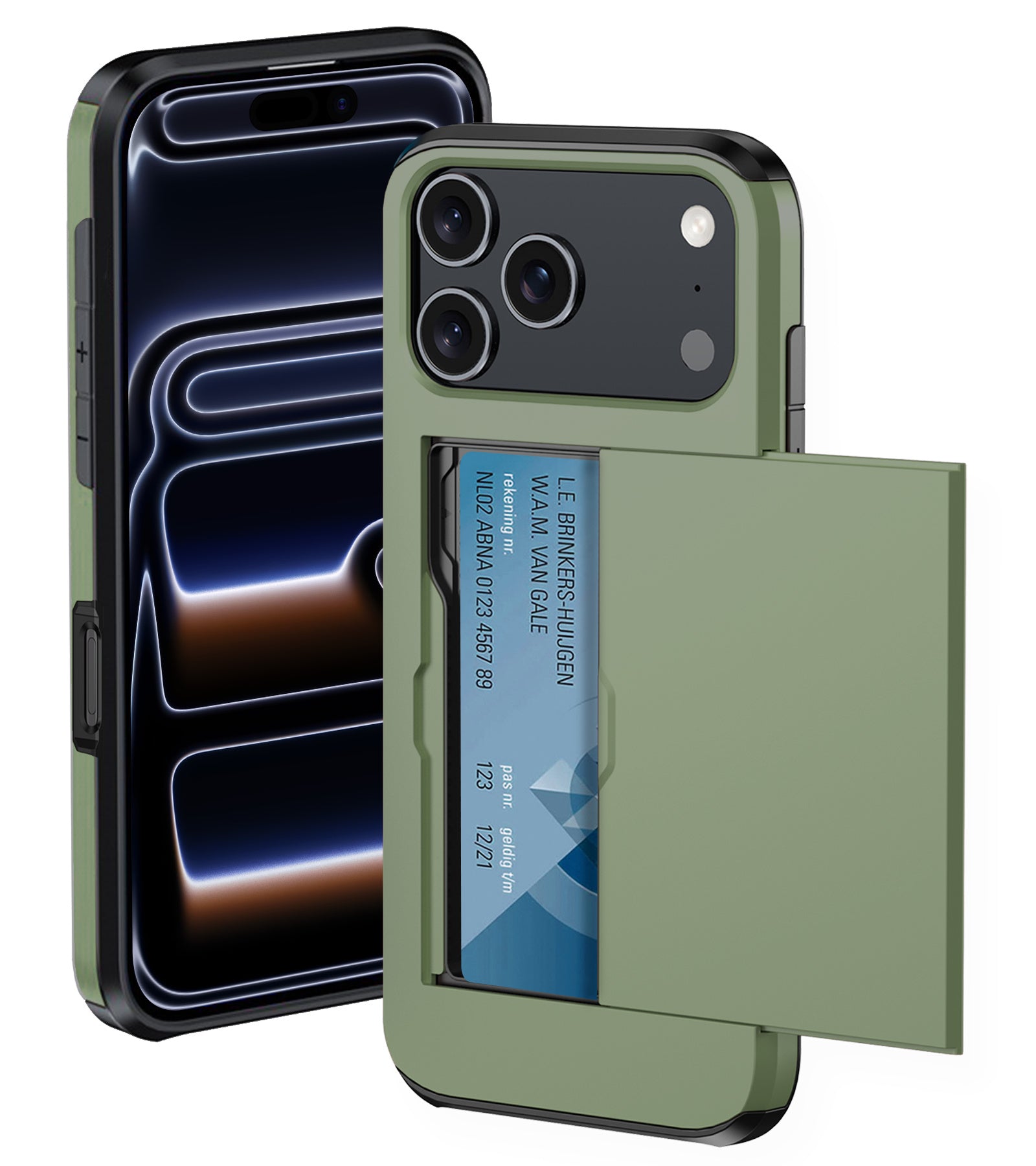 iPhone 17 Pro Hoesje Kaarthouder Hard Case Shockproof - Donkergroen